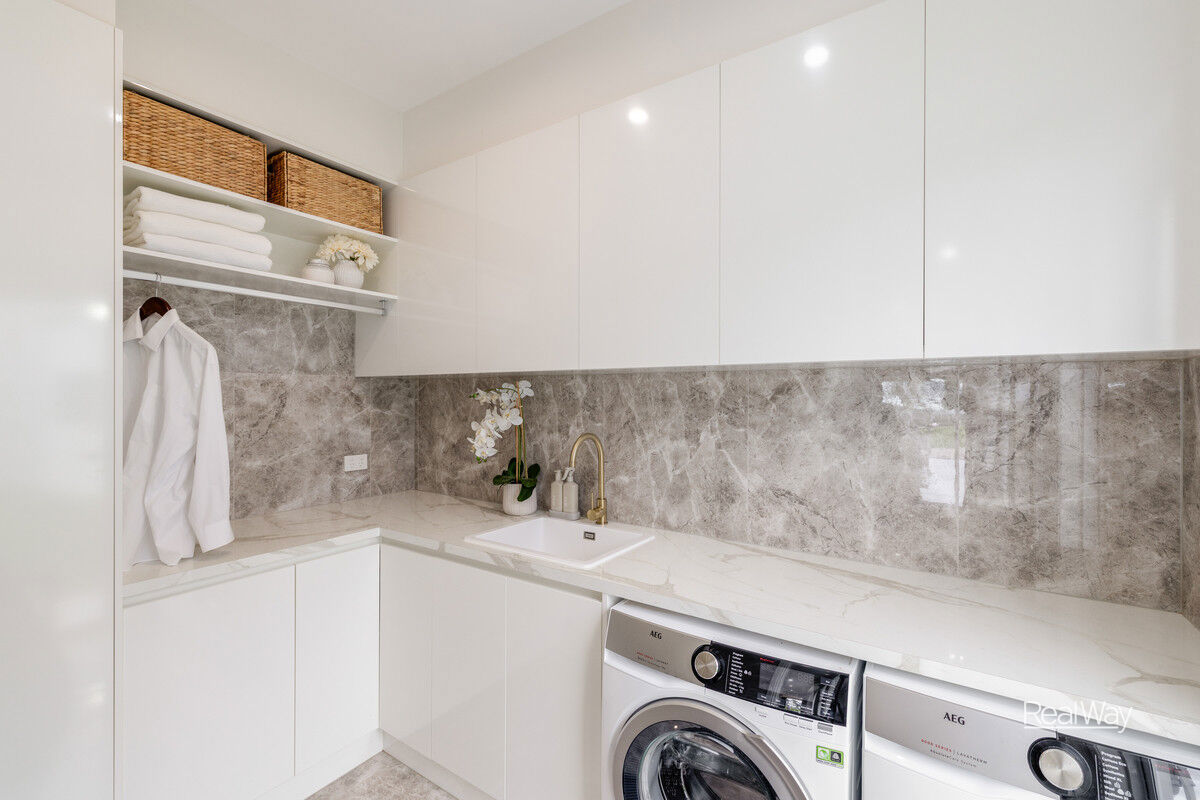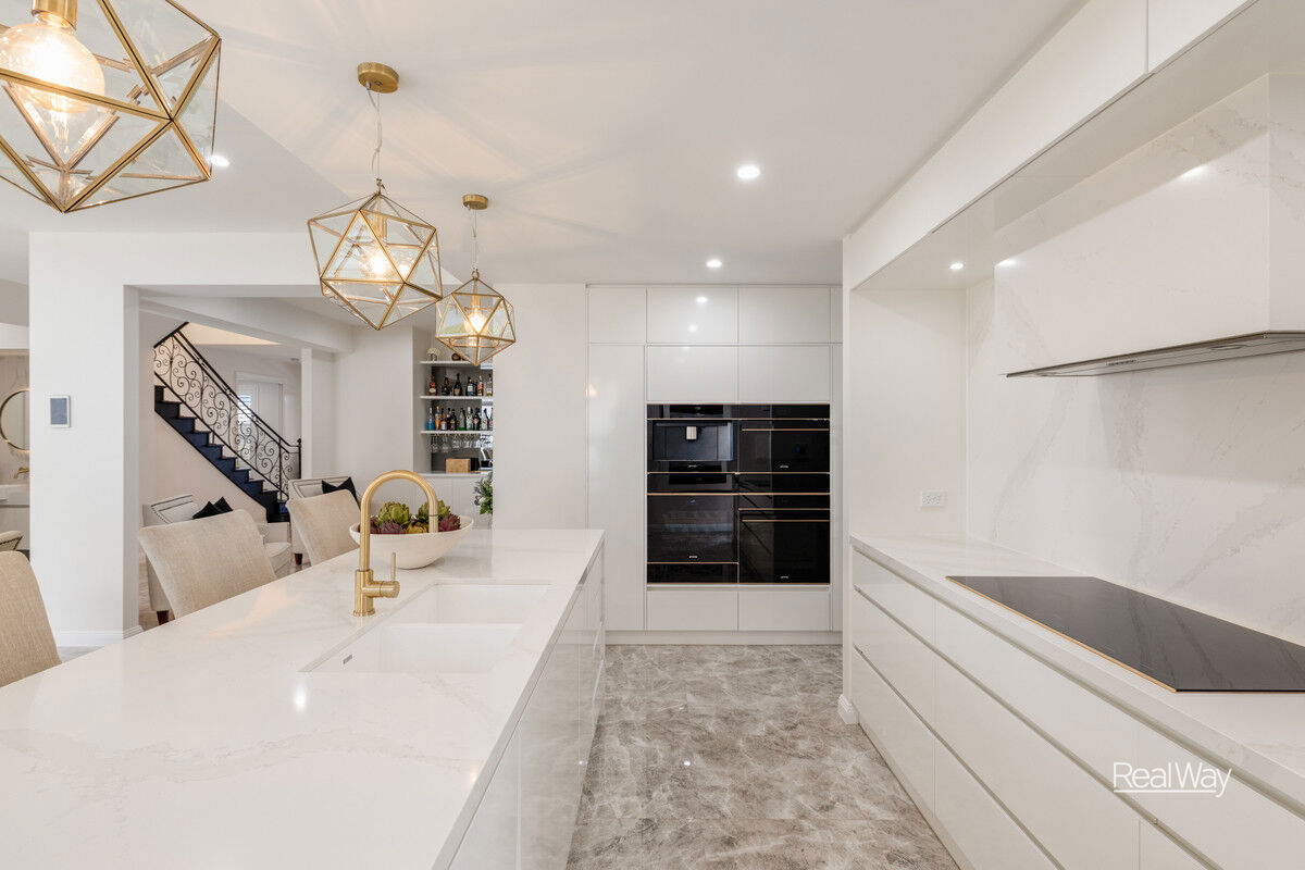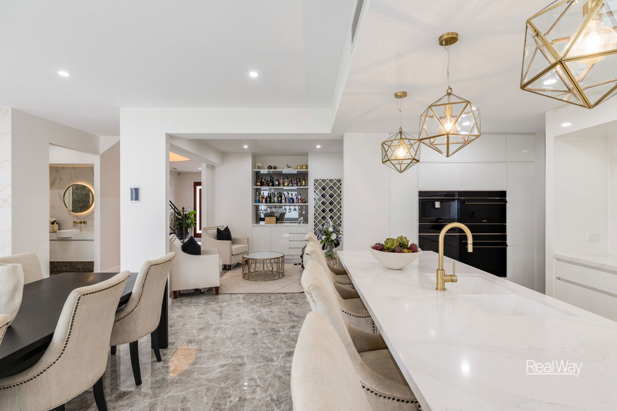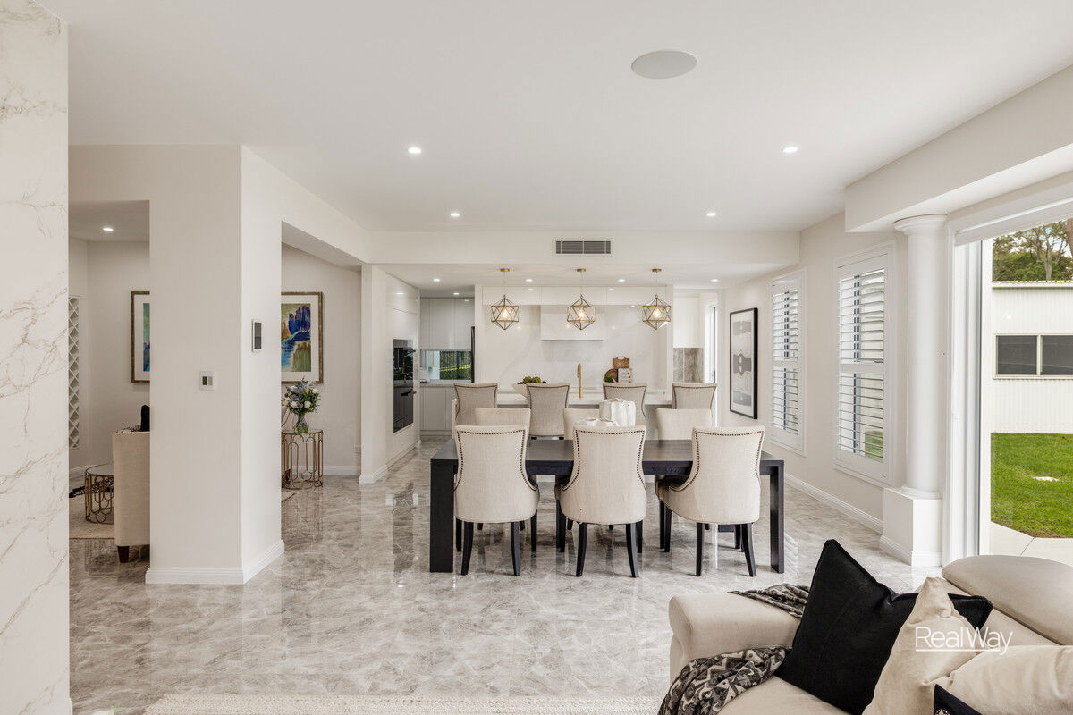 At the heart of the home lies a gourmet entertainer's kitchen, complete with premium appliances, expansive stone benchtops, and a full butler's pantry — seamlessly flowing to elegant dining and living spaces that open onto covered alfresco areas. Whether hosting intimate dinners or large gatherings, every setting is designed for ease and enjoyment.