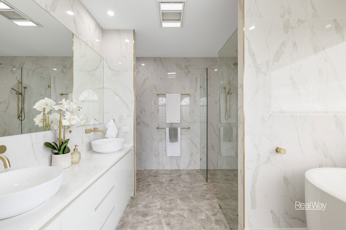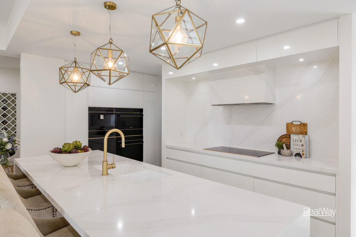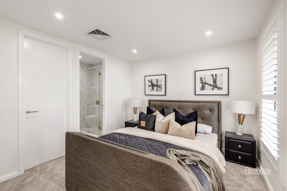 Designed with a commitment to timeless beauty and modern functionality, every element of this home has been carefully curated to create an atmosphere of comfort and sophistication. Spanning across two grand levels, the residence features five spacious bedrooms, including a lavish master suite with a walk-in robe and private ensuite, three bathrooms, and multiple living zones designed for both family connection and quiet retreat.