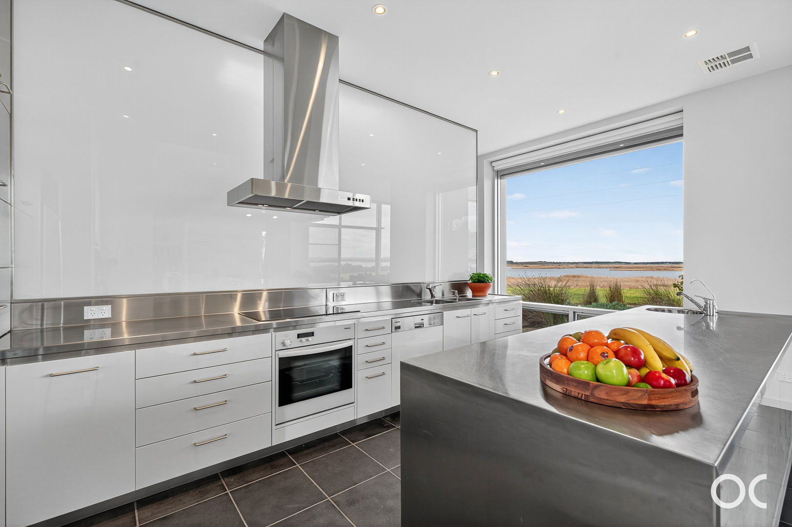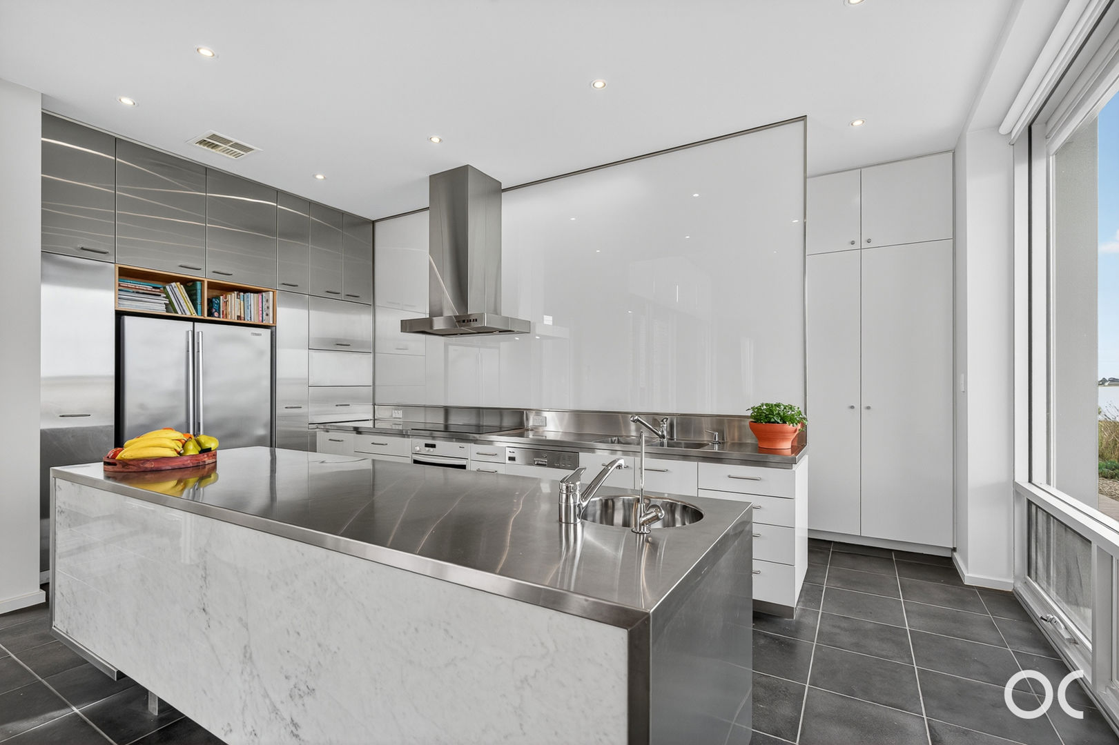 The chefs design-with stainless steel kitchen comes complete with feature glass wall, Westinghouse stainless steel fridge, Miele and DeLonghi appliances, extensive bench top for serving your favourite meals plus plenty of storage space.