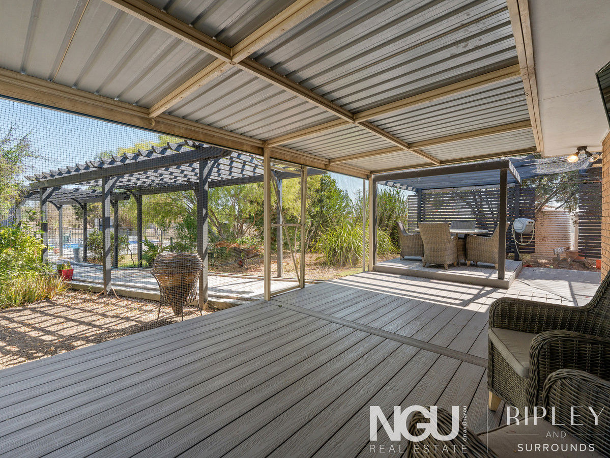 Step outside and the lifestyle truly unfolds. The large rear patio overlooks a sparkling salt-water pool, lush lawns, and established gardens - a private oasis for entertaining or relaxing year-round. The fully fenced yard provides a safe space for pets and children, complete with a pony paddock, shelter, chicken coop, and enclosed catio for your furry and feathered friends.