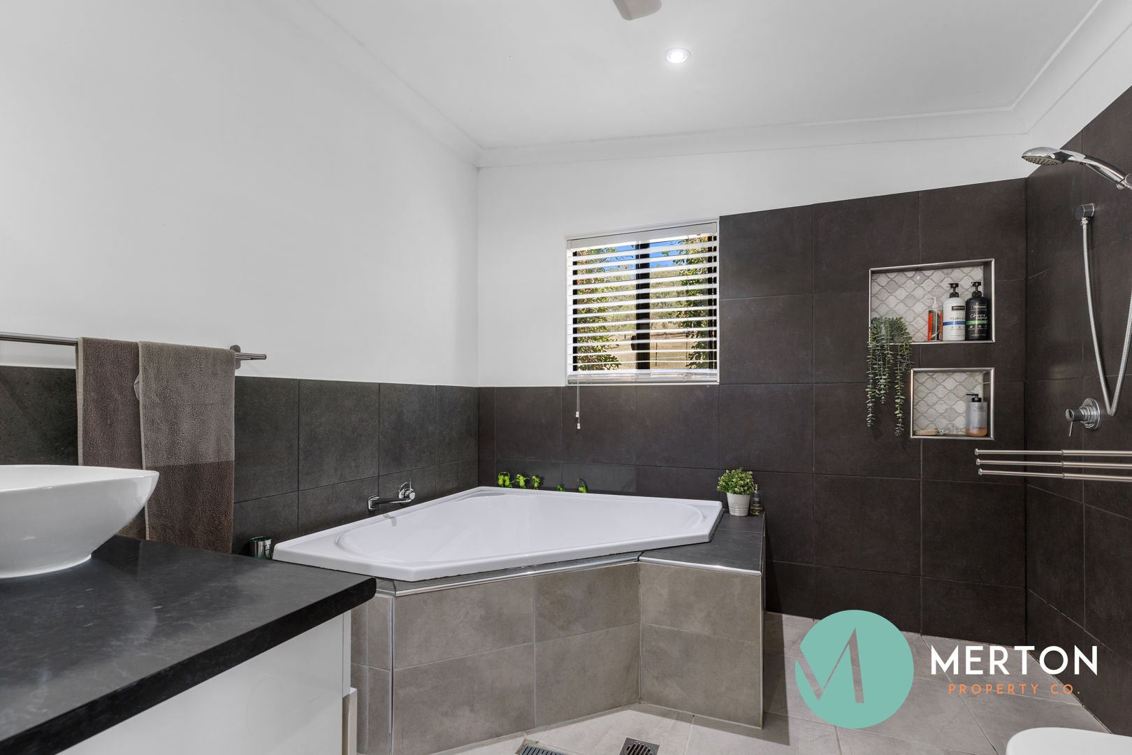 The home blends modern comfort with relaxed country charm. Step inside and discover spacious open-plan living, filled with natural light and cooling breezes that drift through the louvre windows. The kitchen — designed with both style and practicality in mind — features a butler’s pantry-style setup, breakfast bar, and gas cooking, creating the perfect hub for family life or entertaining. The master bedroom offers a generous walk-in robe and ensuite complete with a corner bath and walk-in shower, while two additional bedrooms include built-ins. A fourth bedroom is privately positioned near a third toilet and utility area, ideal for guests or a teen retreat.