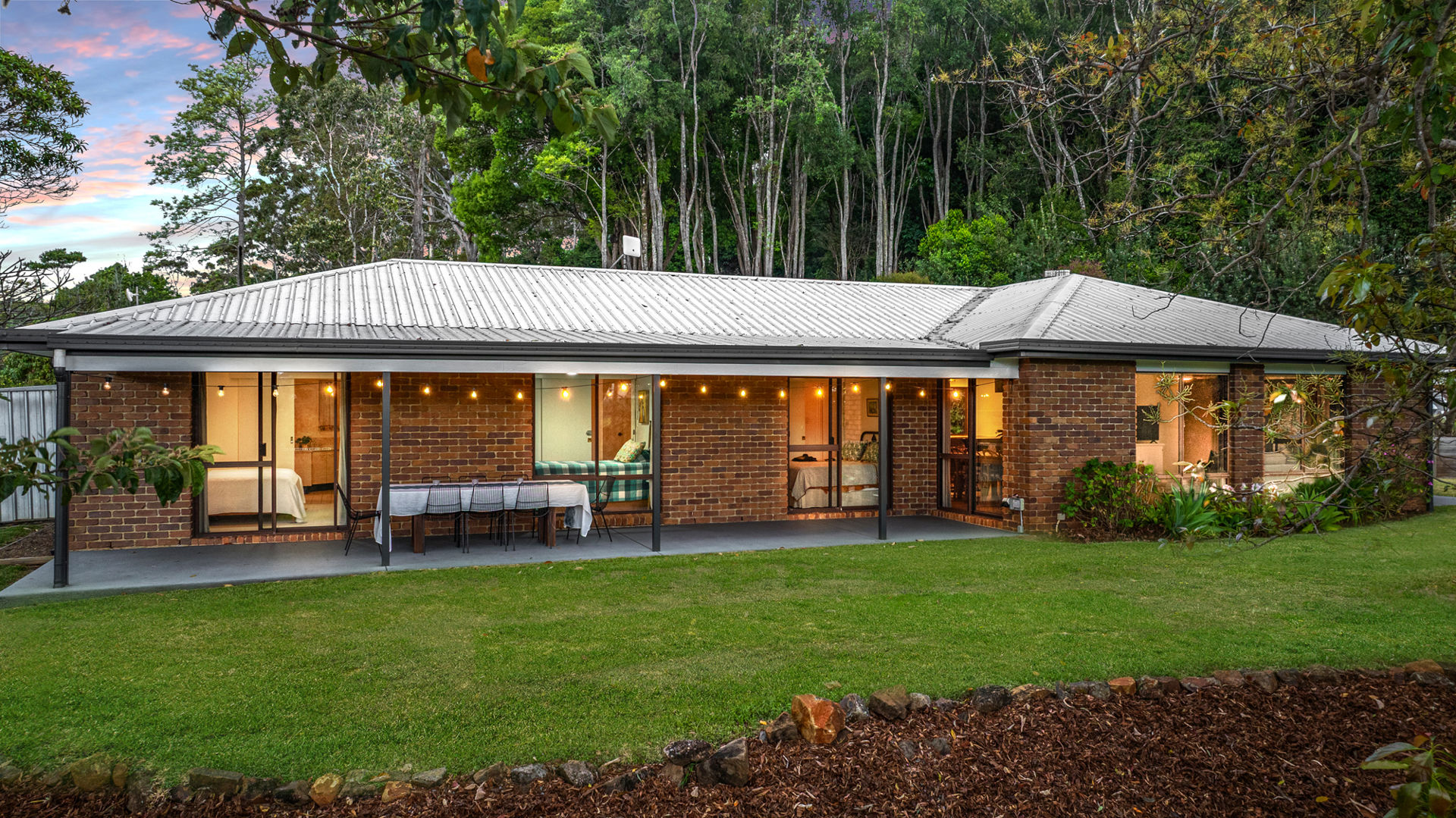 The four-bedroom, two-bathroom home sits in a serene, elevated position capturing cooling breezes and expansive rural views. Inside, open-plan living flows effortlessly to outdoor entertaining spaces, complemented by a cosy fireplace -perfect for cool hinterland evenings.