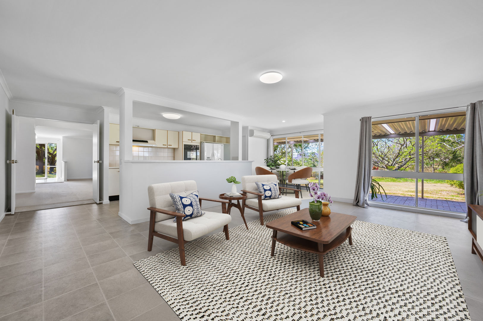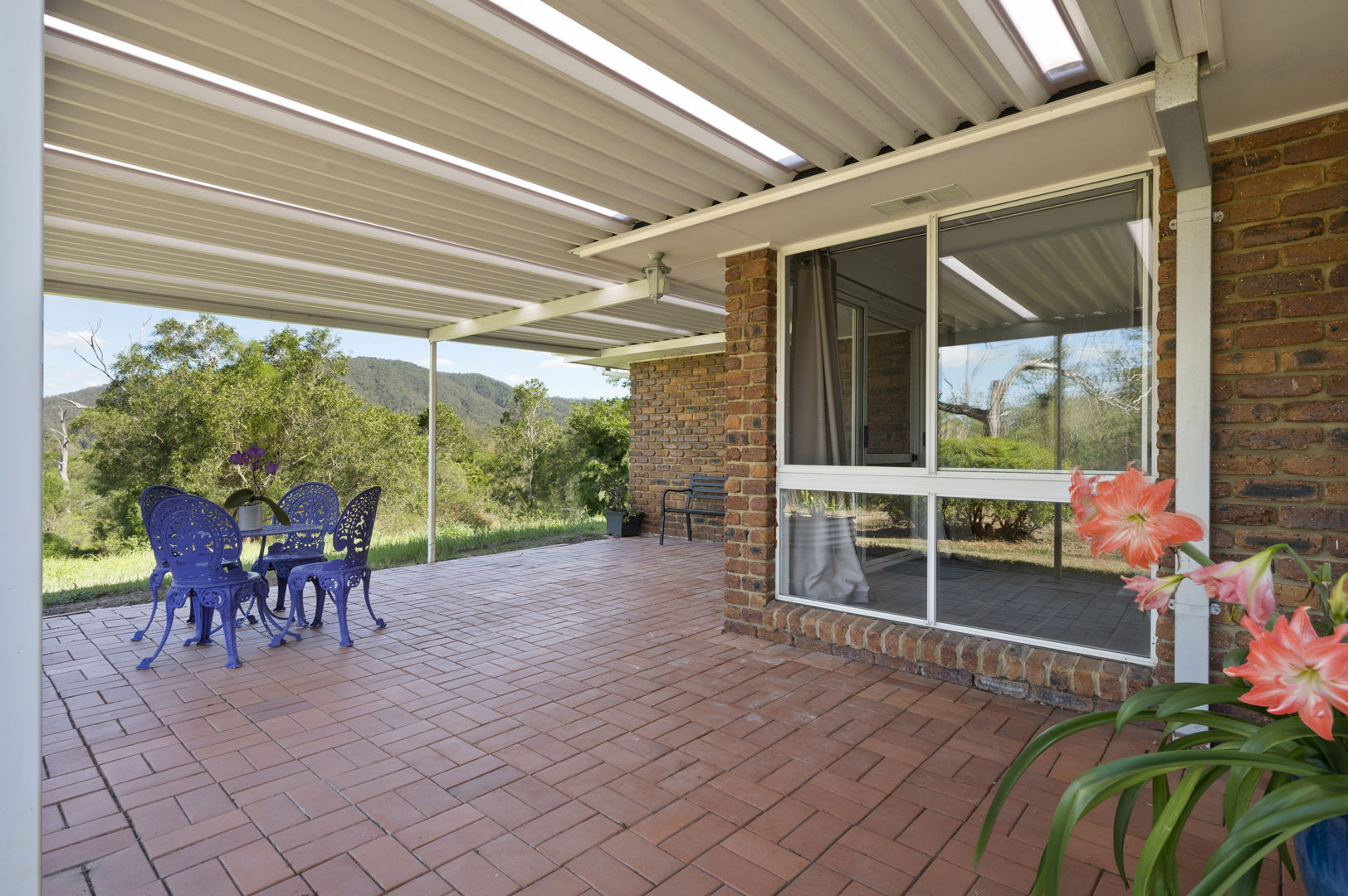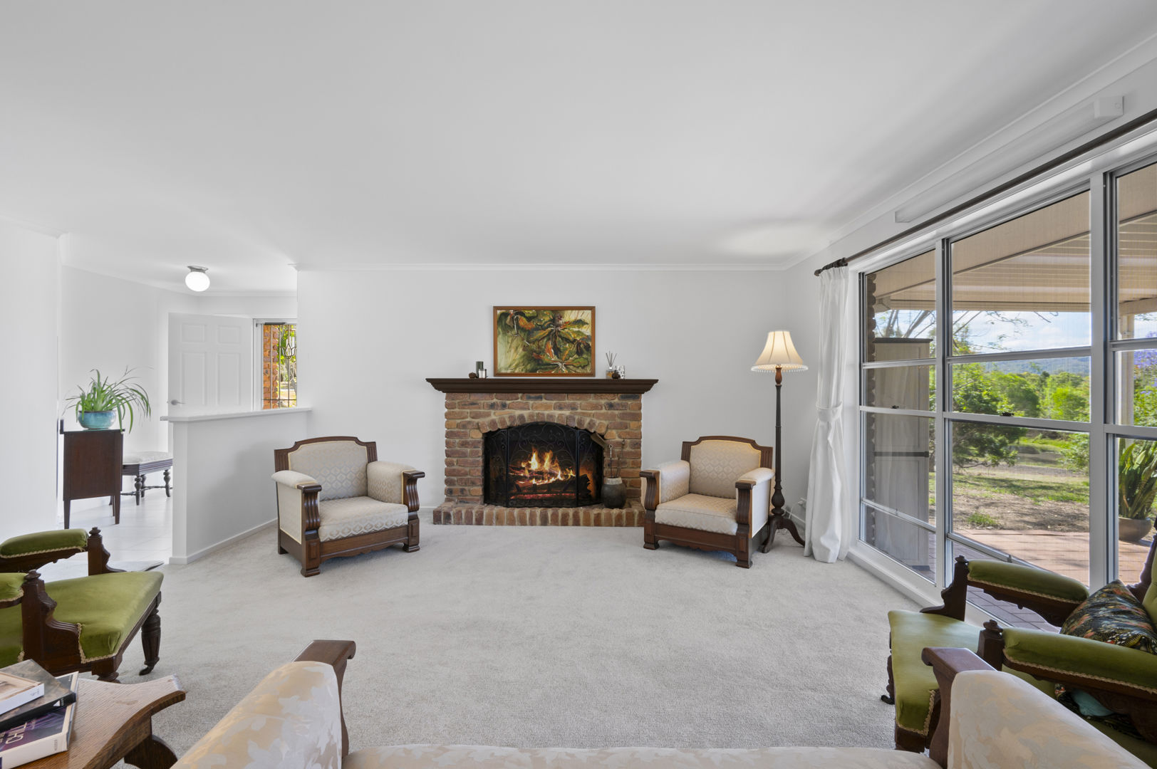 Inside, you'll find three spacious bedrooms plus a study or fourth bedroom, a formal lounge with a charming brick fireplace and formal dining area. There is a separation of space before you enter the other half of the home where there is a wide galley kitchen and walk-in pantry seamlessly integrated with open-plan living and a charming dining nook. This design fills the space with natural light, while oversized windows and doors invite refreshing breezes and frame the spectacular views.