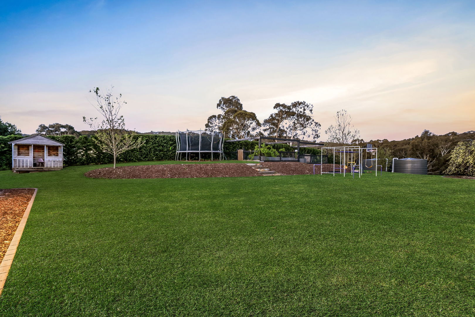 • Bore supplies water to two large rainwater tanks, filling the dam and feeding the rose garden irrigation system