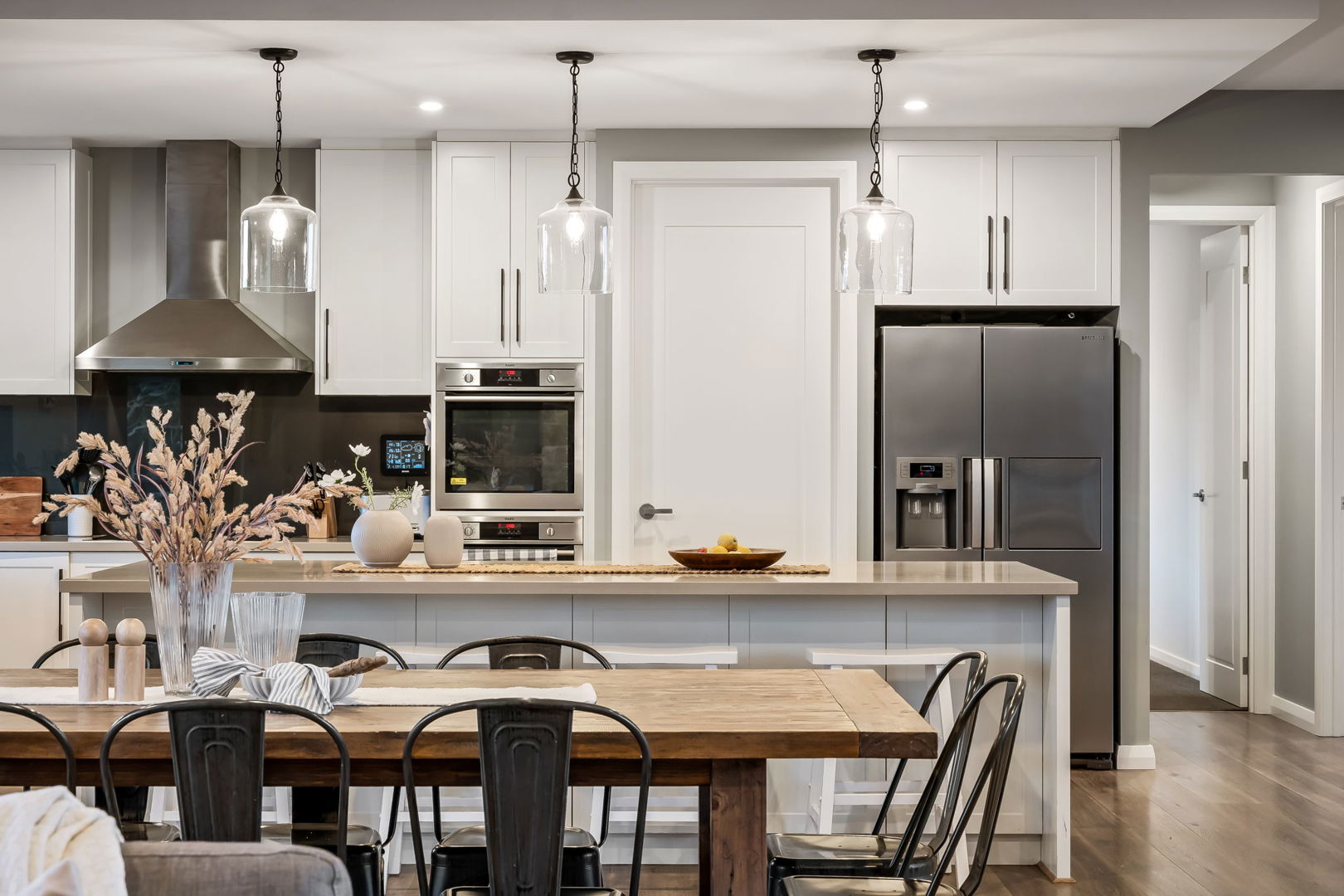 • AEG kitchen appliances including oven, cooktop, and dishwasher