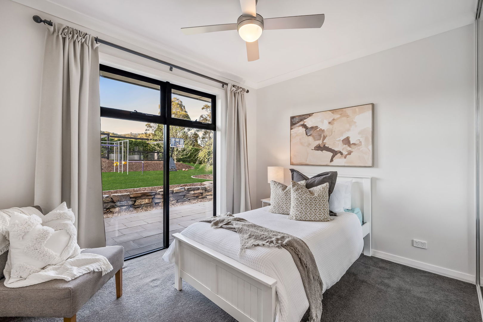 • Fireplace, ceiling fans, insulation, and E-glazed windows for year-round comfort