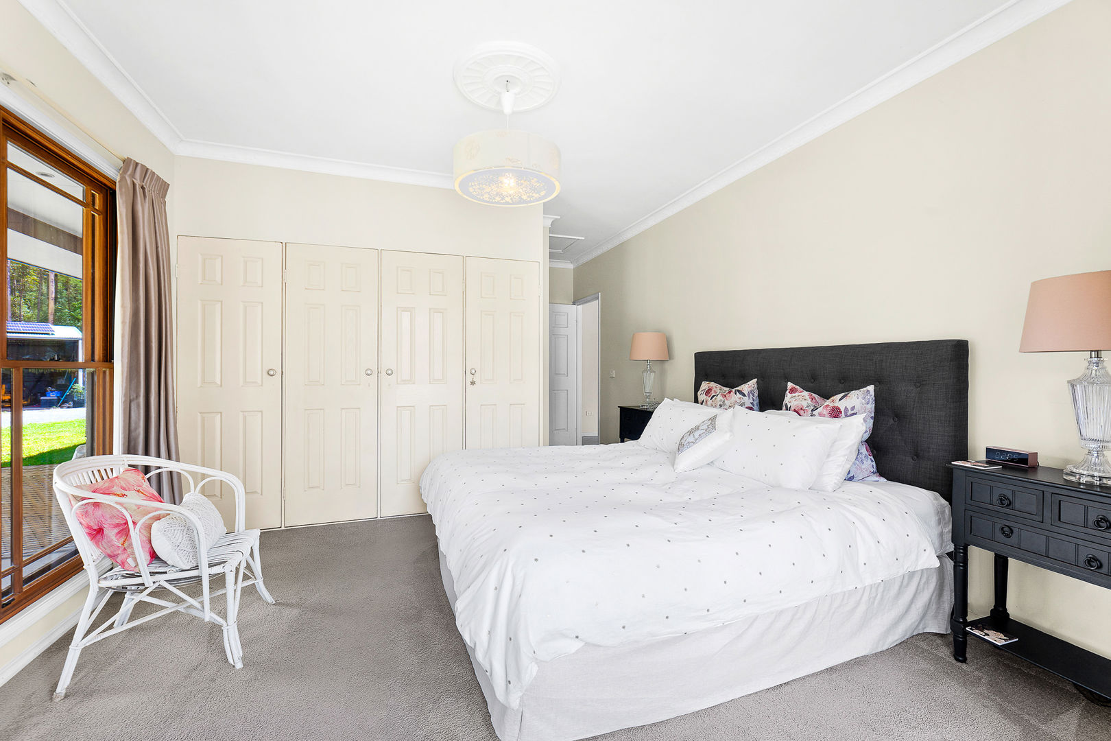 Main bedroom retreat - The spacious main bedroom is a true sanctuary, complete with a WIR and ensuite. french doors open directly to the back undercover alfresco, which transitions seamlessly into external slate flooring, making it the perfect place to relax and enjoy the outdoors.