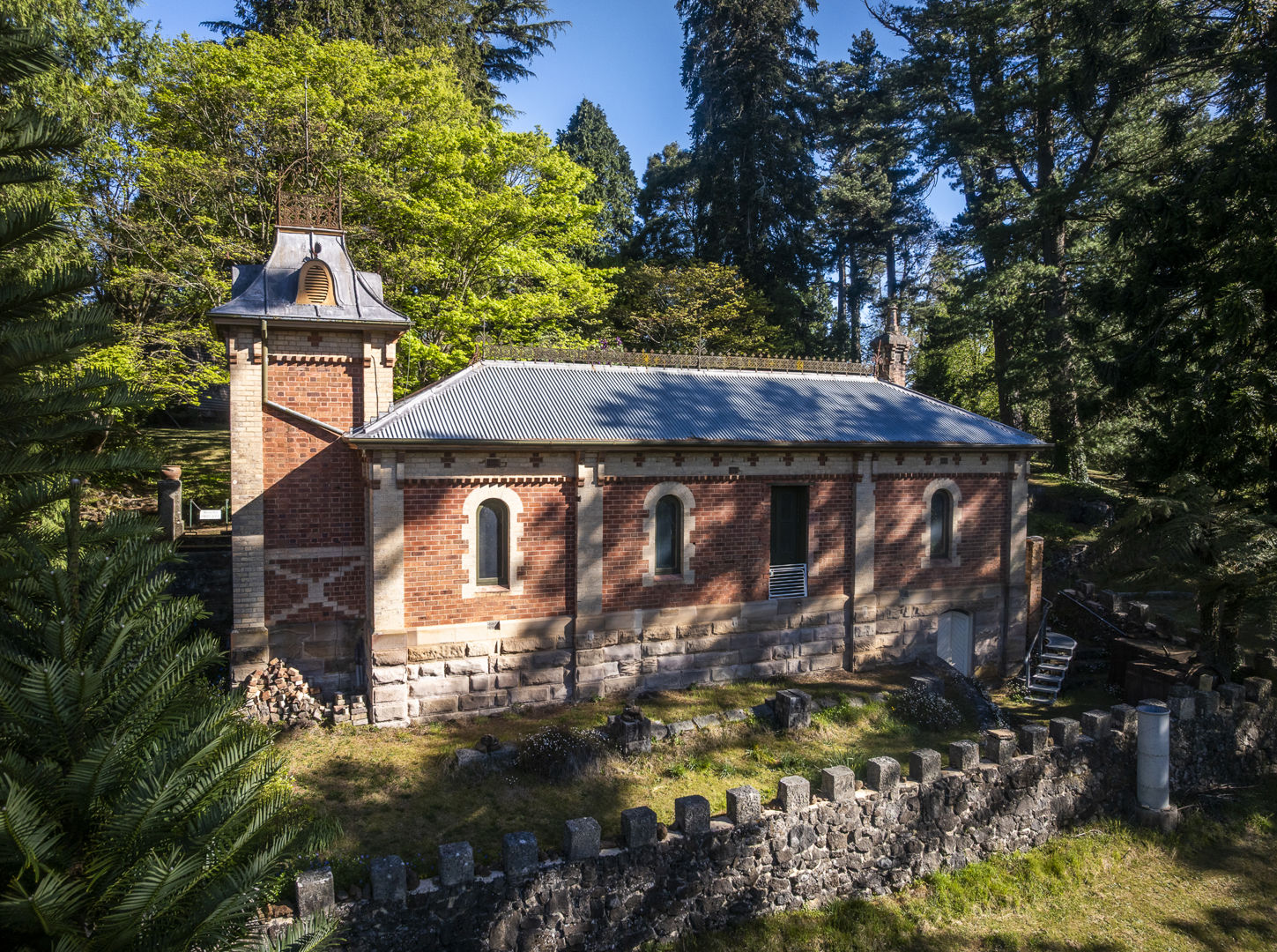 Among Wynstay's most exceptional features is the private Turkish Bath House (c.1892), a rare and elaborate building of polychrome brickwork, cast-iron ornamentation, and Italianate detailing. One of only two private Turkish Baths remaining in Australia, it features patterned ceramic floors, painted vaulted ceilings, and arched double-glazed windows is a testament to the family's cultural sophistication and the estate's national significance.