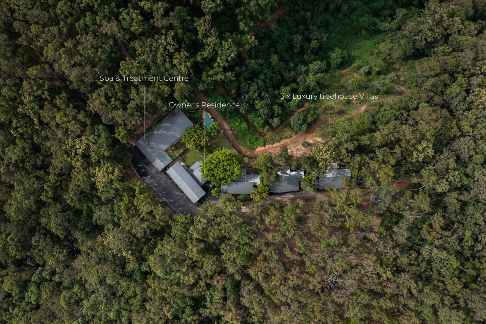 - 3 x luxury treetop villas, each with private plunge pool and dedicated parking