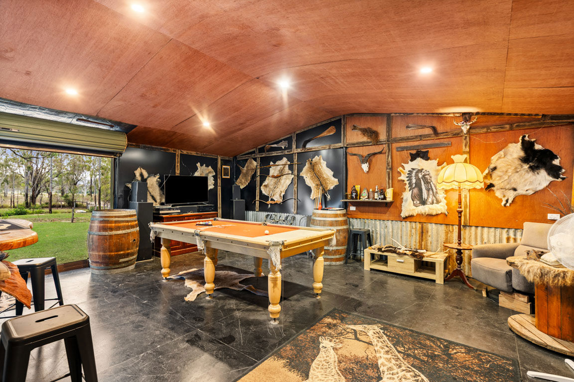 • 12m x 7m oversized insulated shed with a dedicated 'man cave'- a generous, all-weather retreat featuring rustic finishes & space for billiards, games or movie nights.