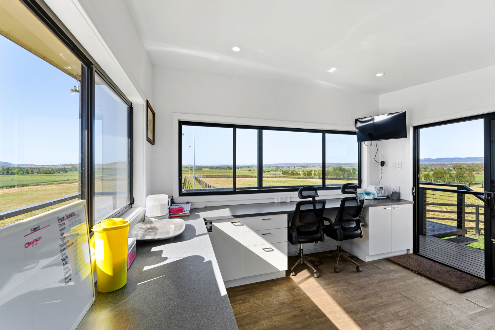 Ridgmont's residential offering includes a renovated homestead with four bedrooms, two bathrooms, and a pool, alongside two staff cottages and two transportable 1-bed accommodation. A modern reception office, constructed in 2020, anchors the commercial infrastructure with administration space, entertaining areas, and a viewing deck overlooking a horse parade ring.