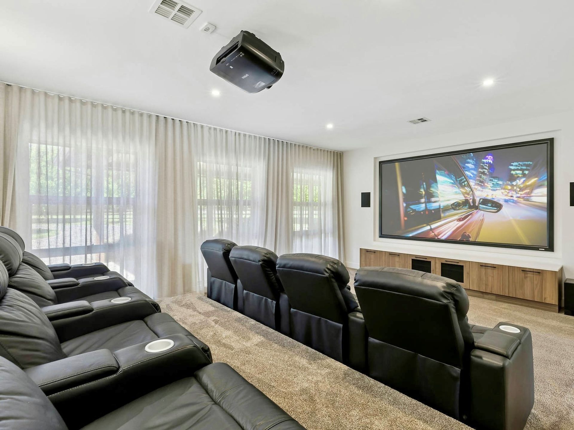 - 4 large bedrooms plus a home office, rumpus, and theatre room with surround sound