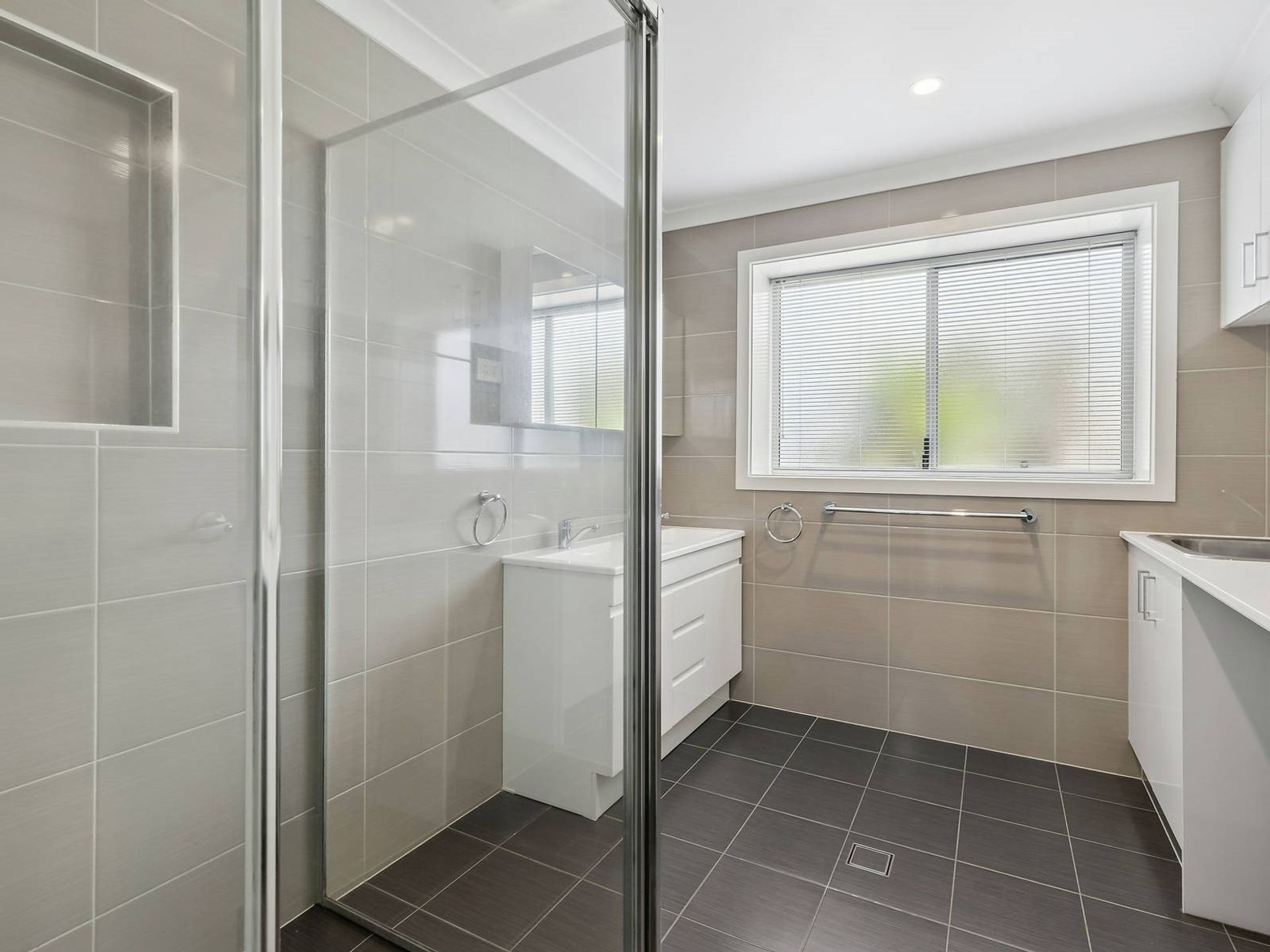 - Combined laundry and bathroom
