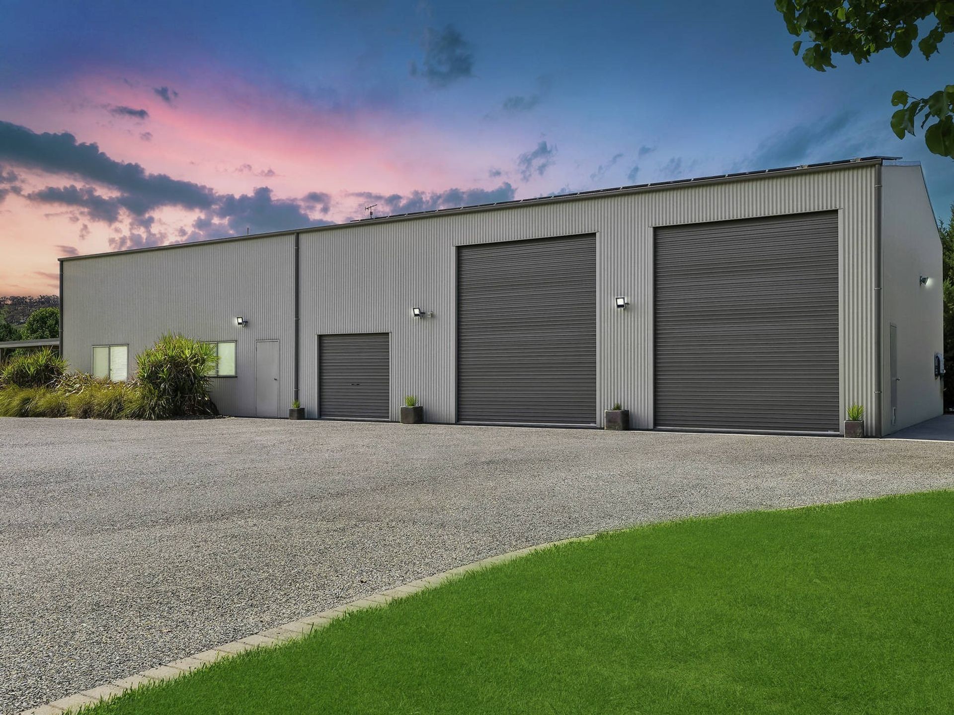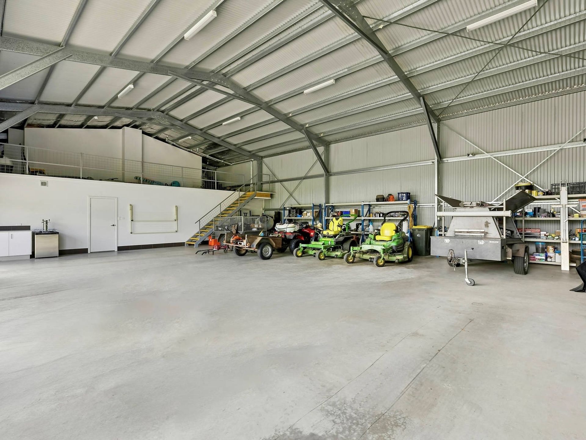 - 183.50sqm shed with mezzanine storage and space for up to 10 cars