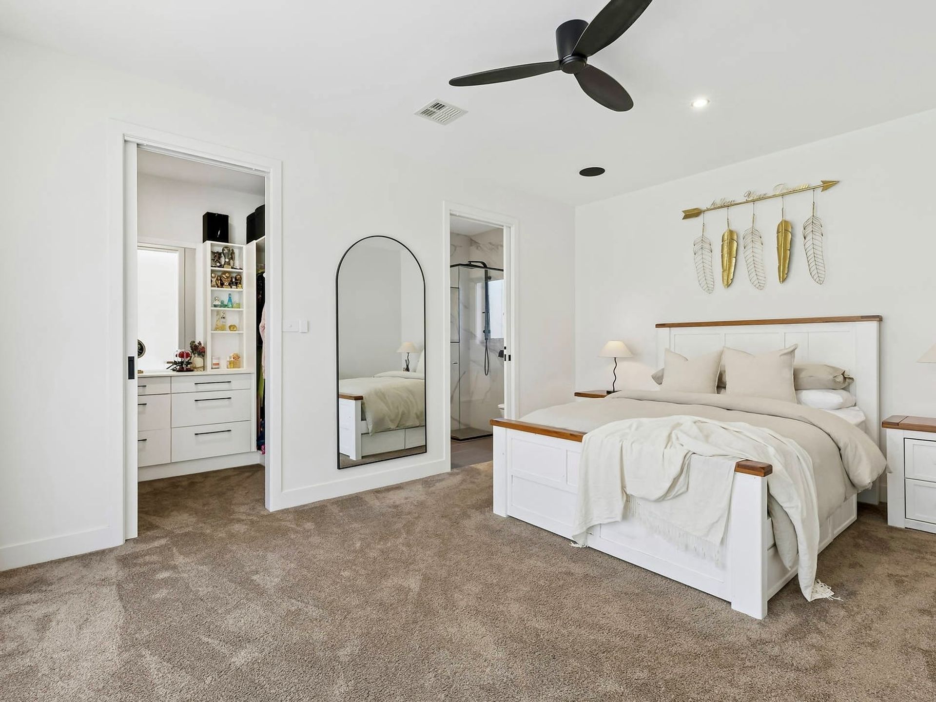 - Four bedrooms (or three plus office) with ceiling fans
