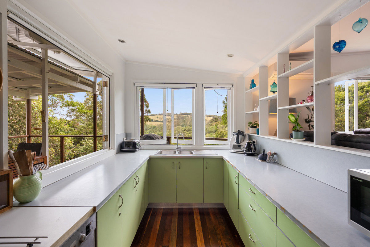 With views from every window, the kitchen flows seamlessly into the casual living space and out to a generous deck, perfect for morning coffees, weekend barbecues, or simply soaking in the sunshine and views. A formal lounge adds another comfortable living space, with wood fire and air conditioning, while four well-proportioned bedrooms and an updated bathroom ensure easy living for the whole family.
