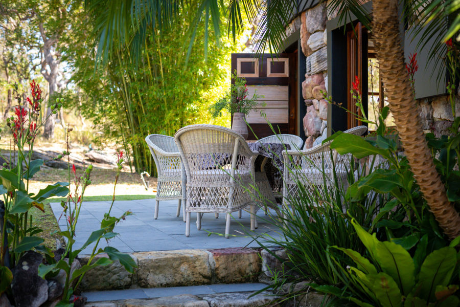 At the basement level, contemporary luxury meets the landscape in a unique open bathroom, featuring a garden shower, vanity, sink and toilet with stunning natural outlooks. This level also houses the laundry and cellar, with walls lined by hand-cut hardwood timber slabs dating back to the late 1800s.