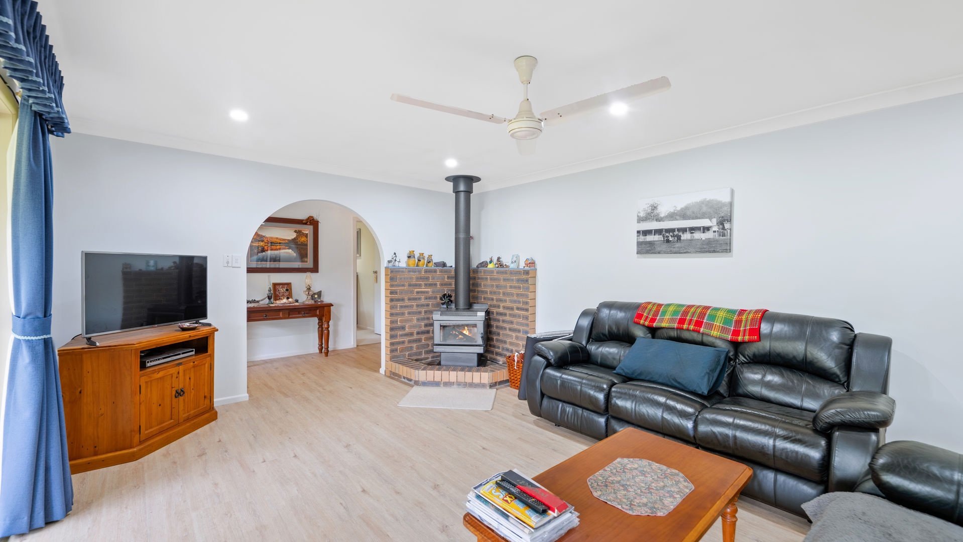 The home features four bedrooms, with built-in robes in two, along with two bathrooms-a main family bathroom and a second bathroom conveniently located in the laundry. The spacious living room features a charming fireplace and flows seamlessly into the open plan kitchen and dining area, creating a warm and welcoming space for family life. To ensure comfort in every season, the property includes three reverse-cycle air conditioners-one in the open plan dining and kitchen area, one in a bedroom, and another in the living room. Please refer to the floor-plan provided for an understanding of the layout.