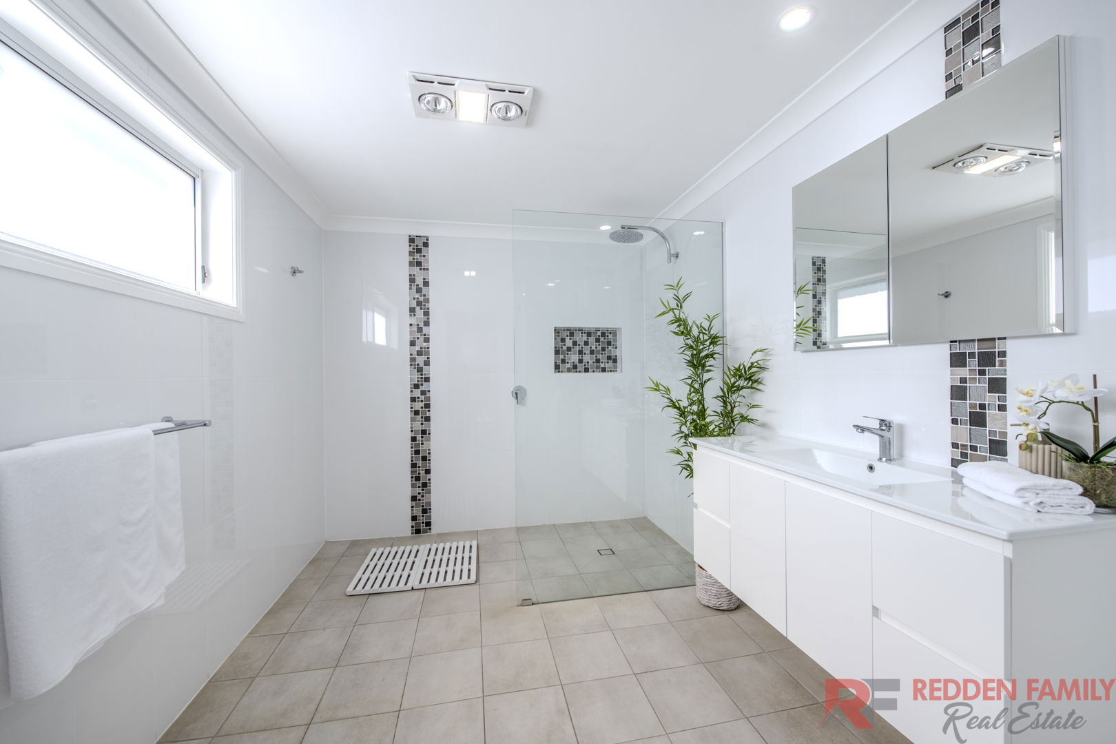 The main bathroom showcases floor to ceiling tiles, a large shower and floating vanity, with a separate powder room. The laundry includes built-in cabinetry, a 3rd toilet and external access. Comfort is assured year-round with ducted reverse cycle heating, split-system air conditioning, an electric log heater, and dual electric hot water systems.
