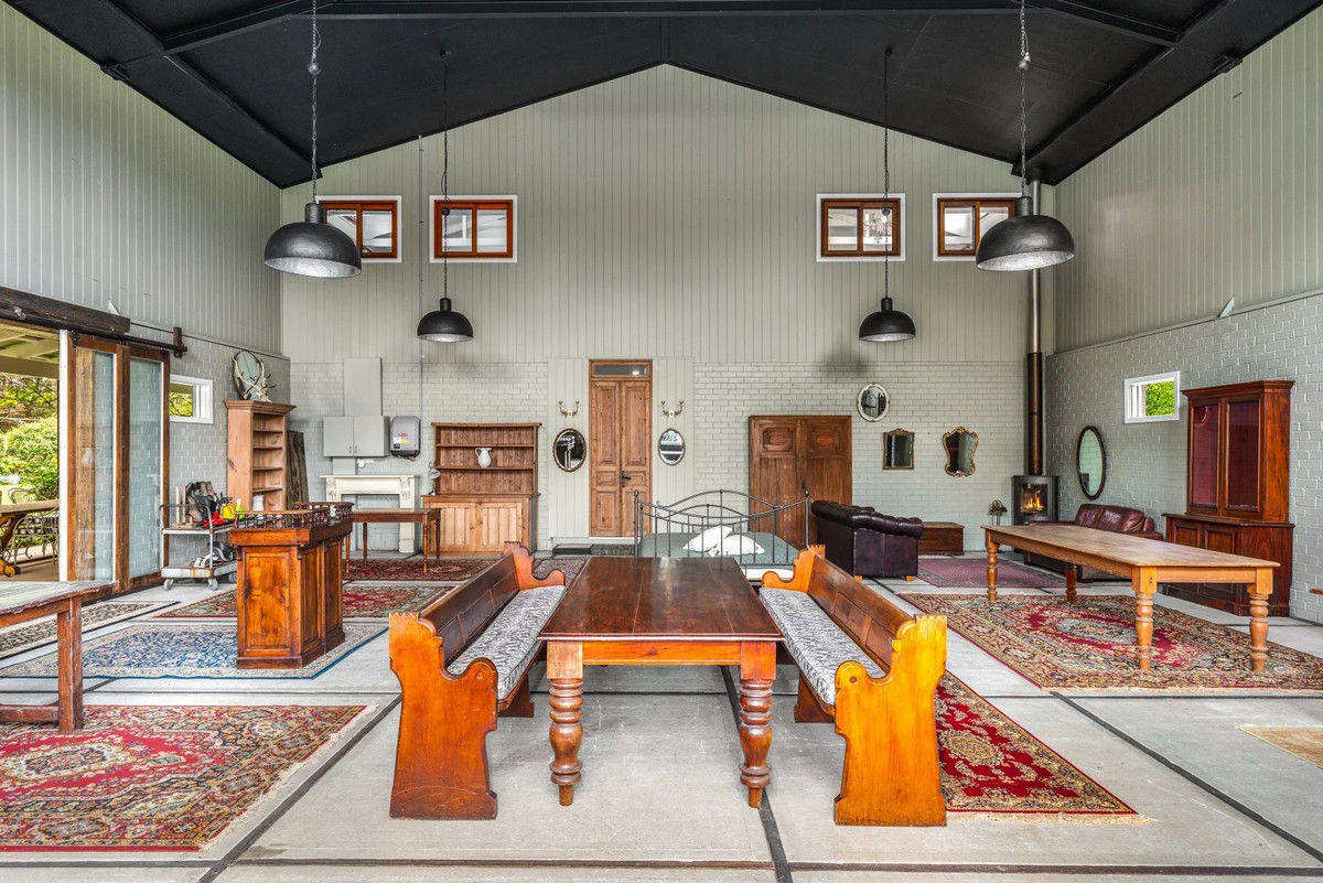 At the heart of the property sits The Lodge – a substantial residence created for hosting. A series of luxury guest suites, all air conditioned, enjoy sweeping rural and lake vistas, while the dramatic reception and great rooms give you the volume and flexibility to entertain, retreat, run a business retreat, or welcome extended family. A commercial caterer's kitchen (currently not in use) with cool room, storeroom and wash-up area means future events, weekends with friends or boutique accommodation are all realistic options. Wide verandahs and a sheltered courtyard with open fireplace let you enjoy the gardens in every season.