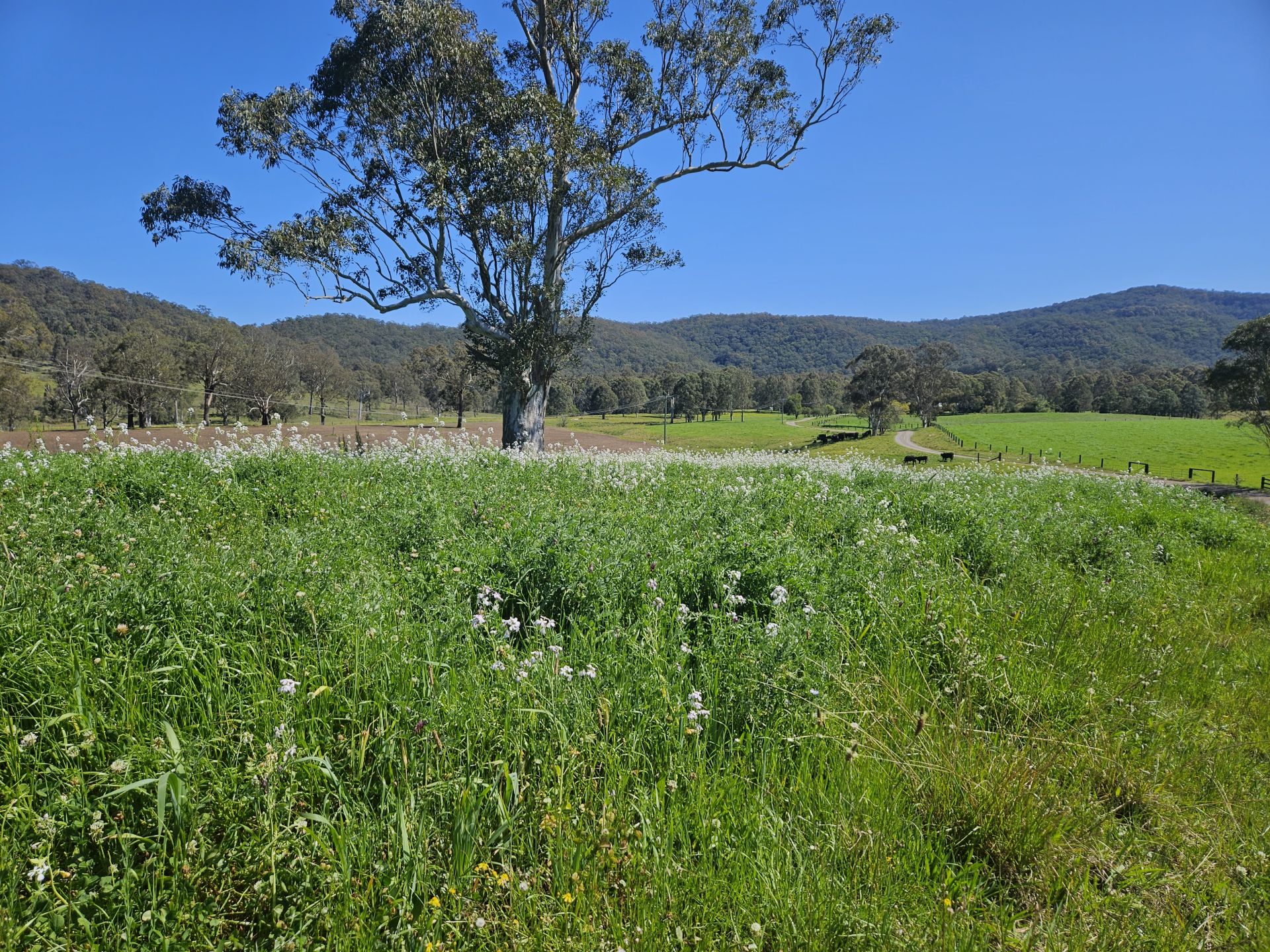 An incredibly scenic entry, driving past several dams with birdlife and cattle in the paddocks. The country is all level to gently undulating,and heavily pasture improved.