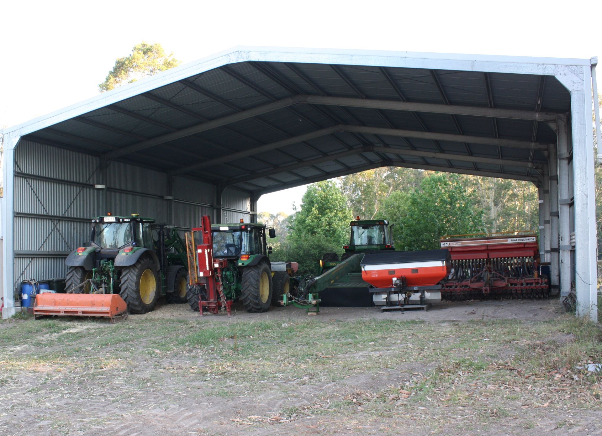 Shedding: x 2 farm sheds: 4 bay machinery farm shed and workshop 15x 7.5m, 3 phase power connected. And adjacent new large, drive through open bay, high rise farm shed 18x15mx 5.1m.