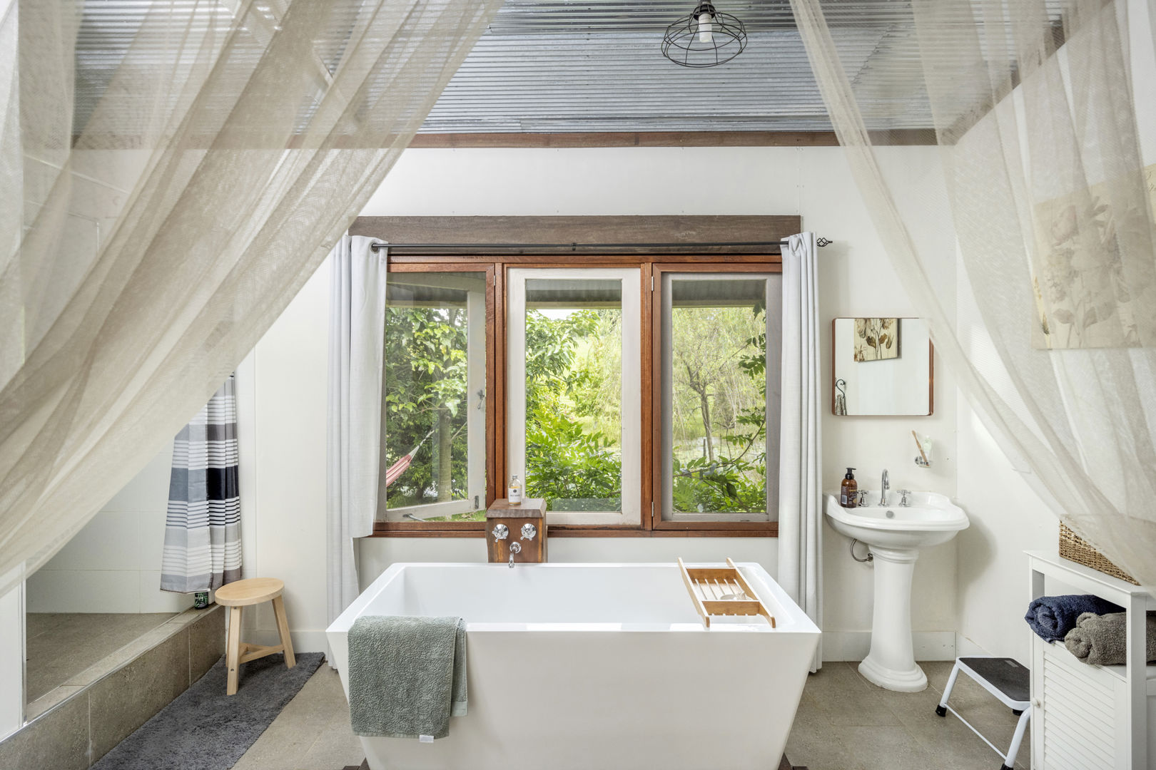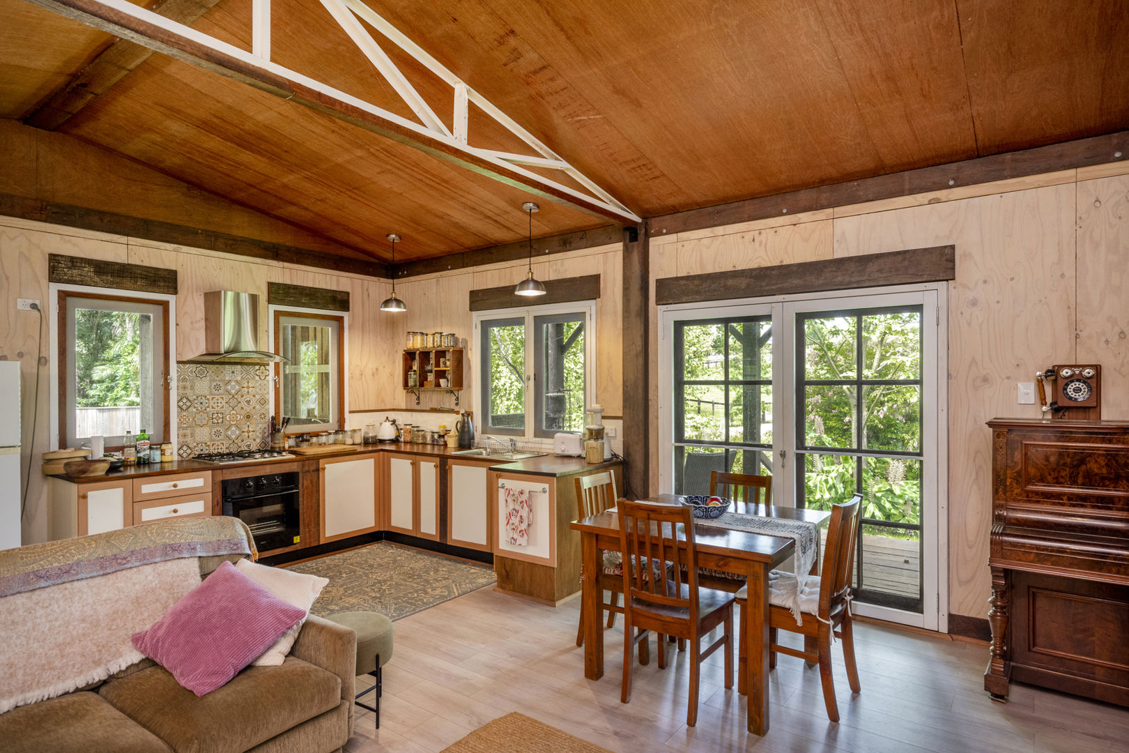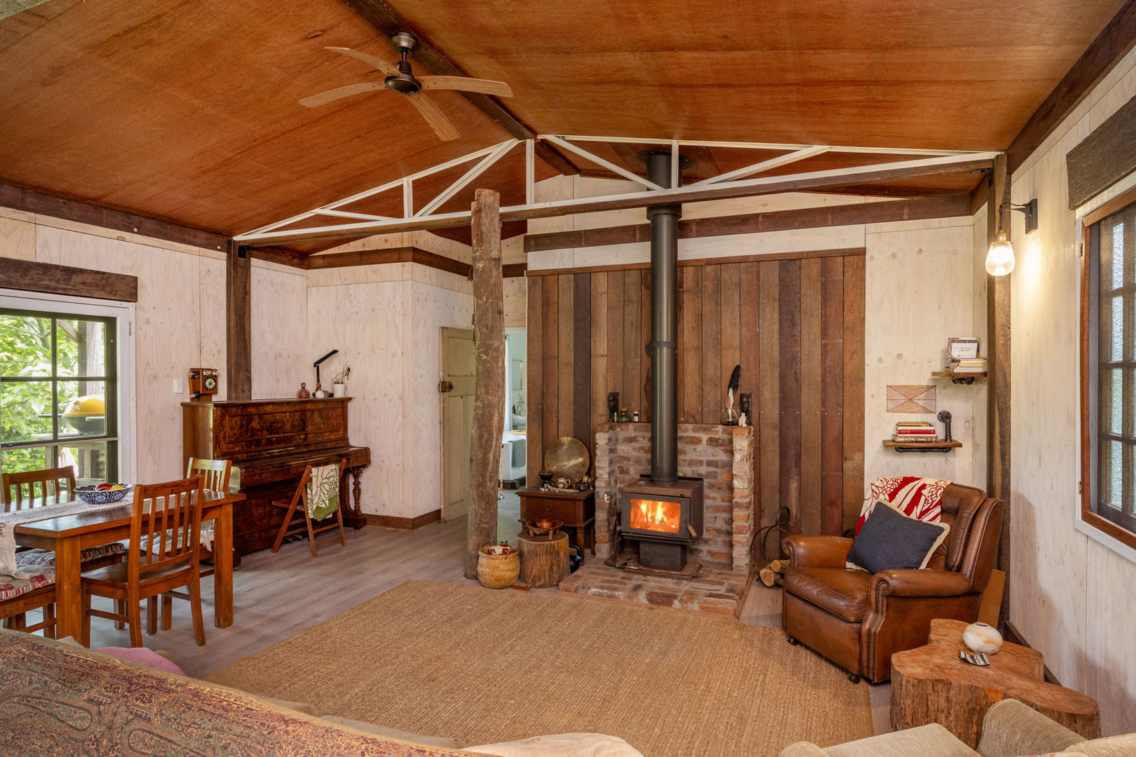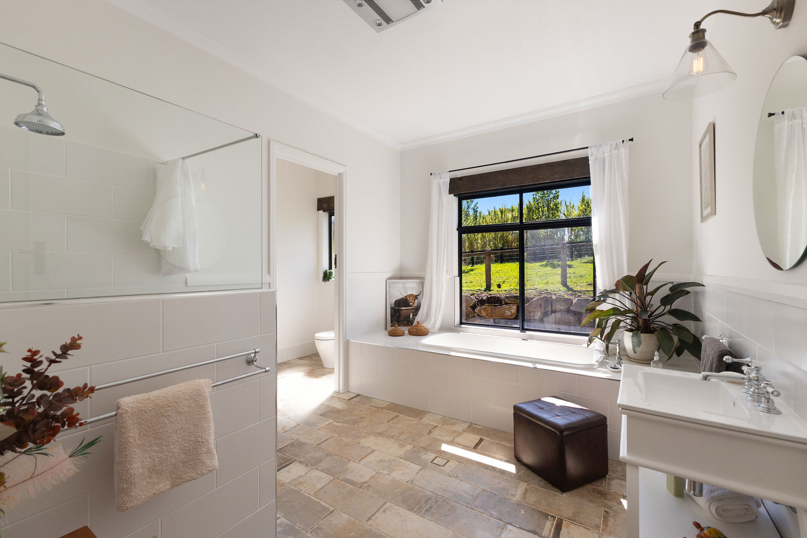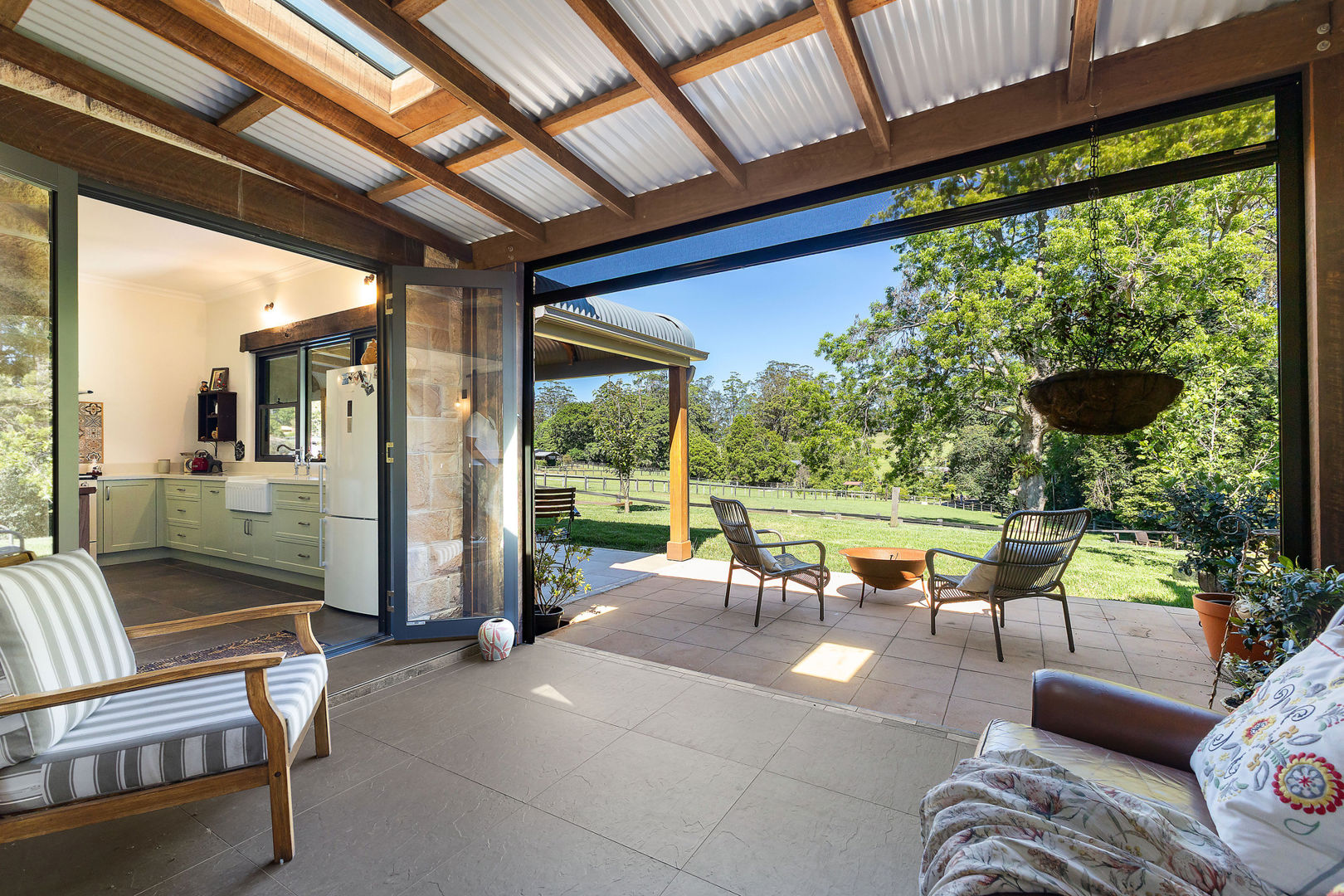 Accessed via a 270-metre driveway, the main residence is a contemporary interpretation of a classic Australian farmhouse. Constructed in 2023, with signature bullnose verandahs fringing the front and rear, it blends timeless design with relaxed liveability. Recycled timbers, hand-carved sandstone and wrought iron finishes lend warmth and character, while expansive windows and vaulted ceilings frame panoramic rural vistas and invite in abundant natural light. The home chef will also delight in the custom kitchen with stone benches, Smeg 900mm cooker and bespoke joinery, complemented by separate living and dining zones, each with cosy fireplaces. Additionally, enjoy three bedrooms and two bathrooms, including a master suite with dual walk-in robes, indulgent ensuite and direct access to an arboured deck with an idyllic outlook.