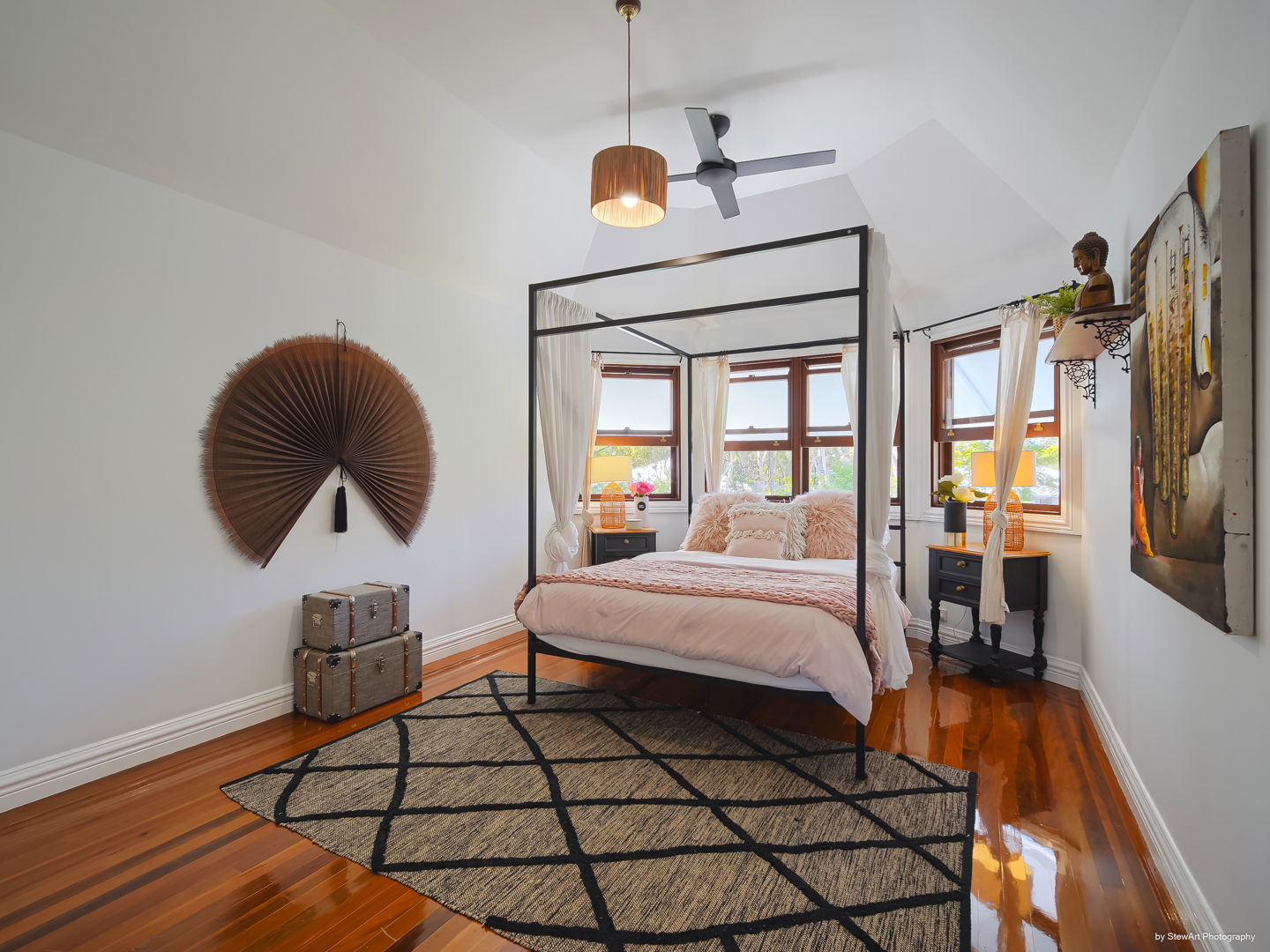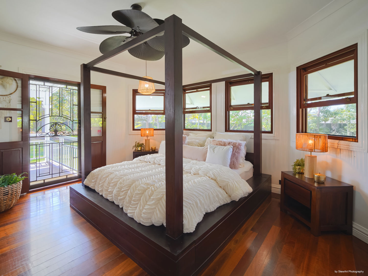 - Elevated architectural Queenslander with sweeping verandahs and grand street presence
