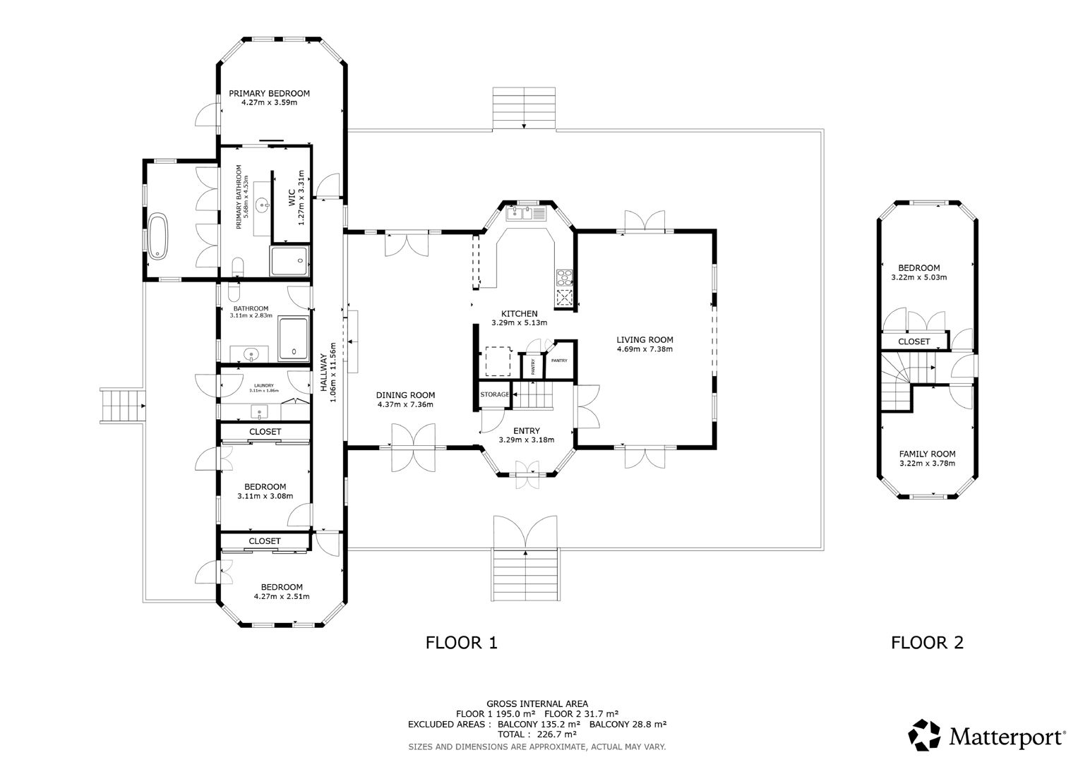 - Formal and informal living zones with wood fireplace and garden outlooks