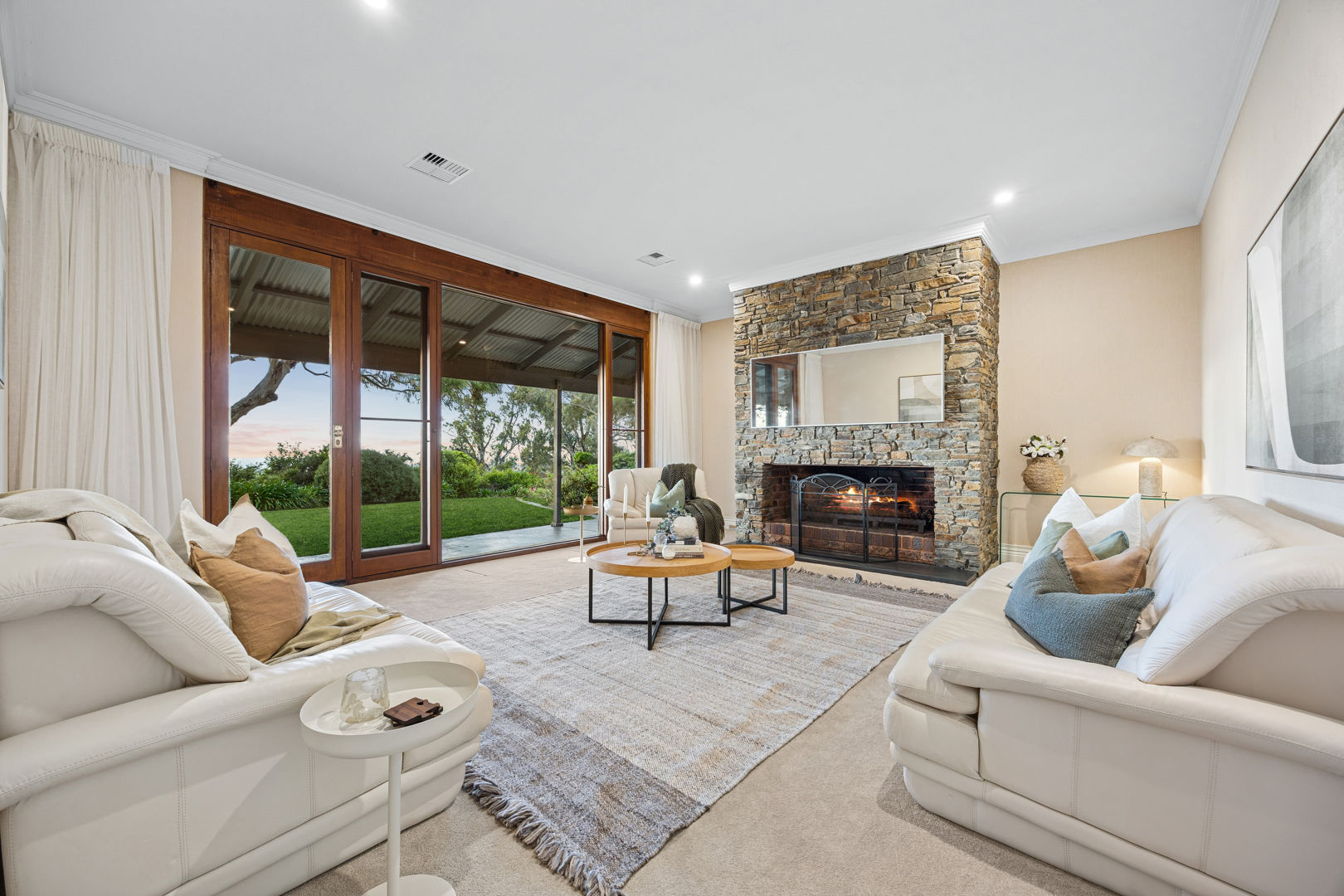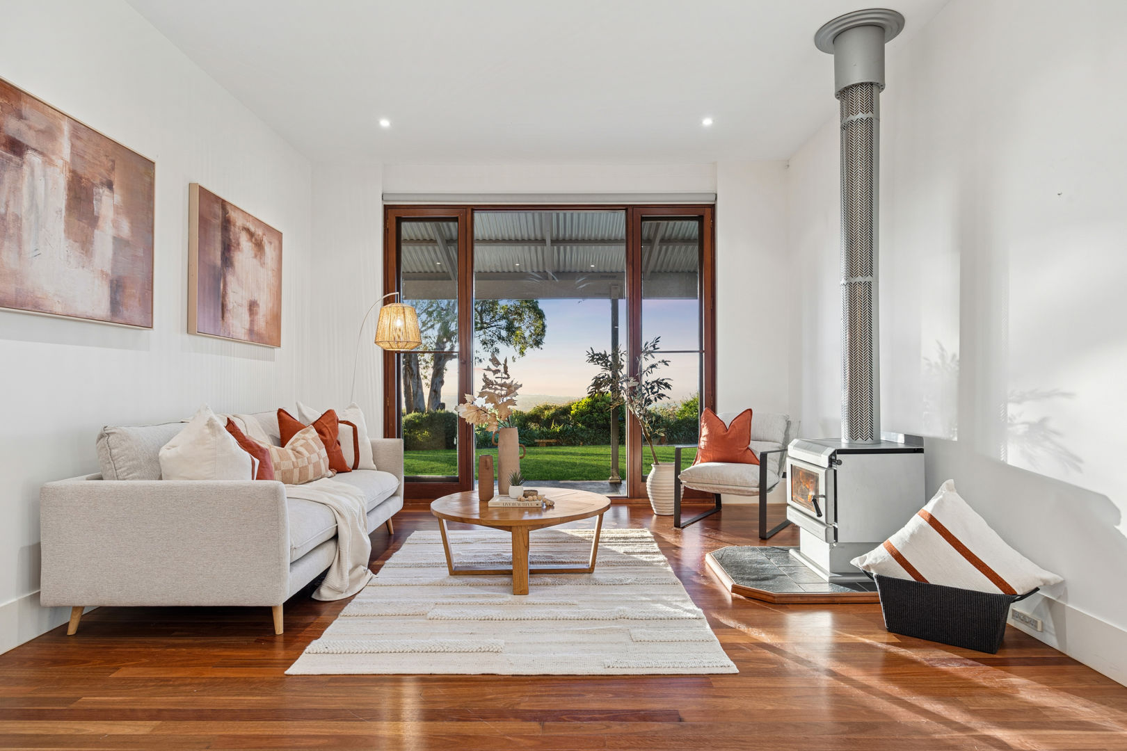 Comfort is assured year-round with ducted reverse cycle cooling, underfloor heating, and the winter warmth of slow combustion stoves and wood-burning fireplaces. Additional highlights include a powder room, study, abundant storage, and an automatic double garage with plant room.