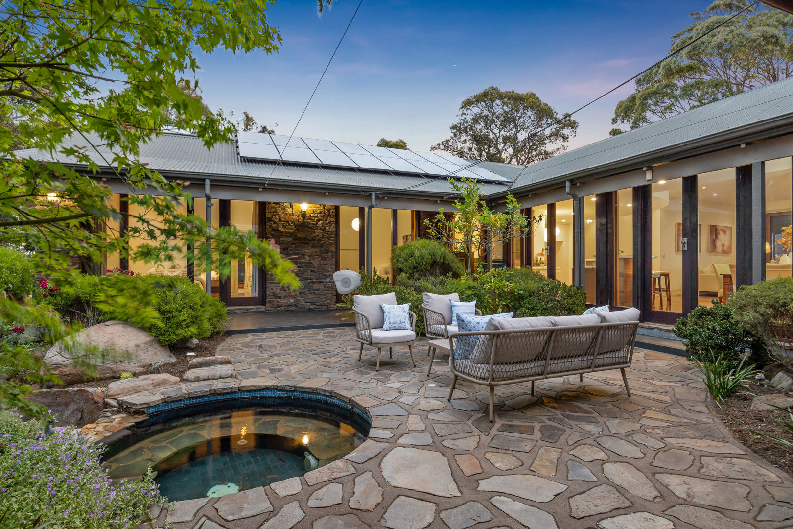 Constructed from local bluestone and designed to blend seamlessly with its natural surroundings, this grand residence connects effortlessly to the hills, sea and sky. Its U-shaped floorplan wraps around a sheltered central courtyard - a stunning architectural feature that draws light and landscape into the heart of the home, creating a beautiful sense of openness and flow.