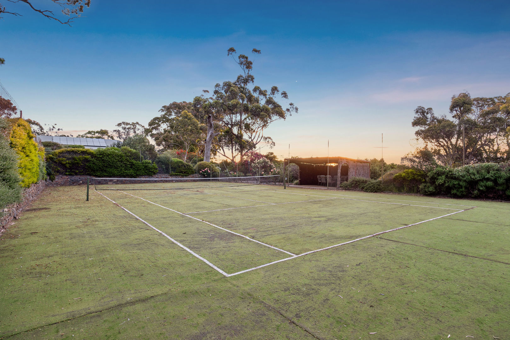 Outdoors, the property unfolds as a private retreat designed for both recreation and relaxation. Enjoy a match on the north-south synthetic grass tennis court, take a refreshing dip in the pool and spa seamlessly integrated into the landscape, or unwind beneath the rustic brush shelter - the ideal setting for effortless entertaining and laid-back weekends.