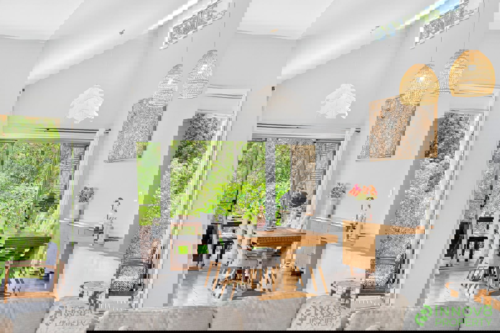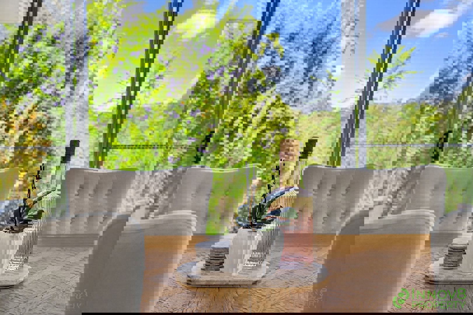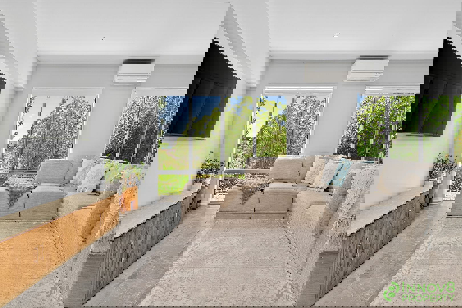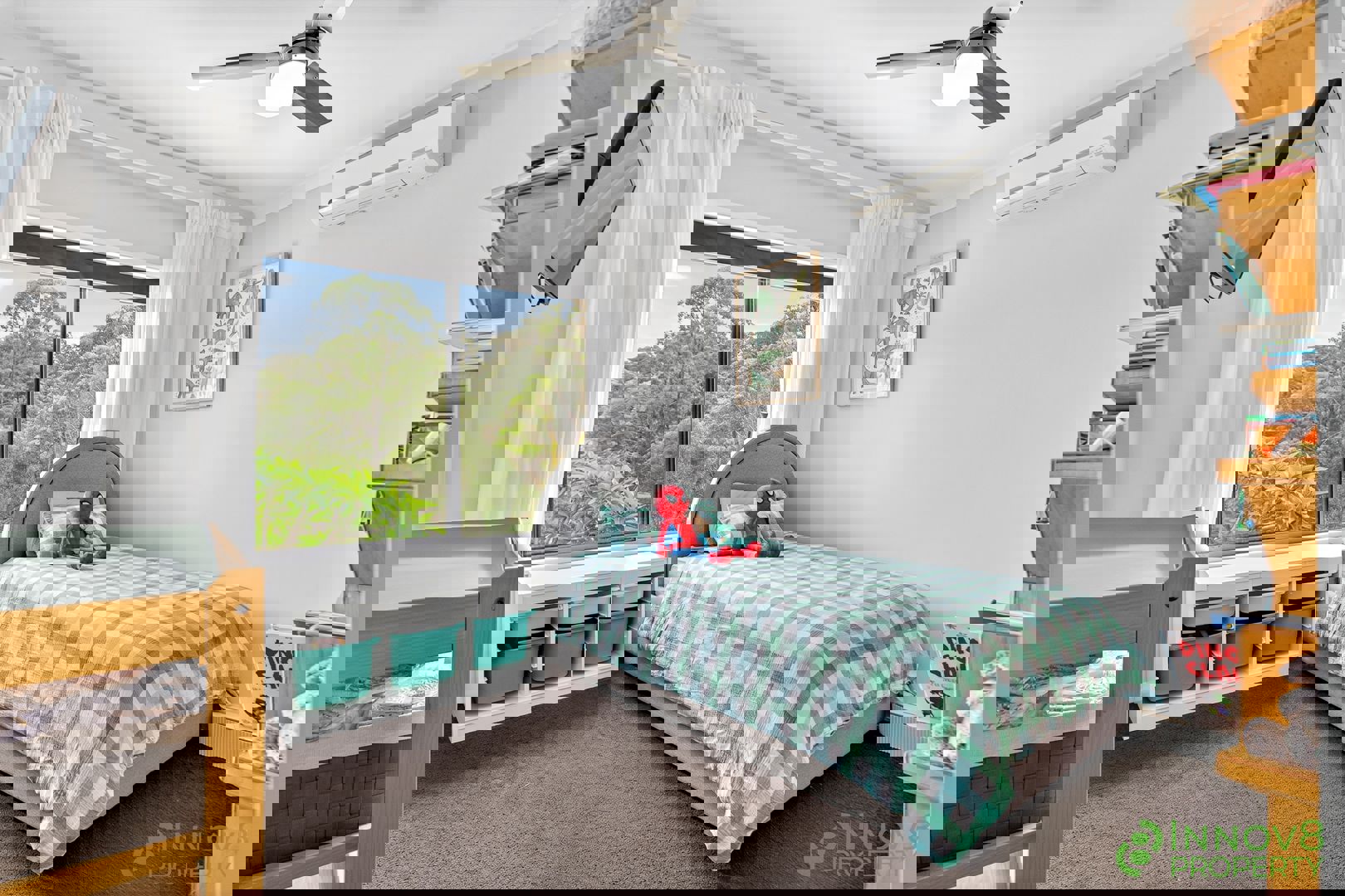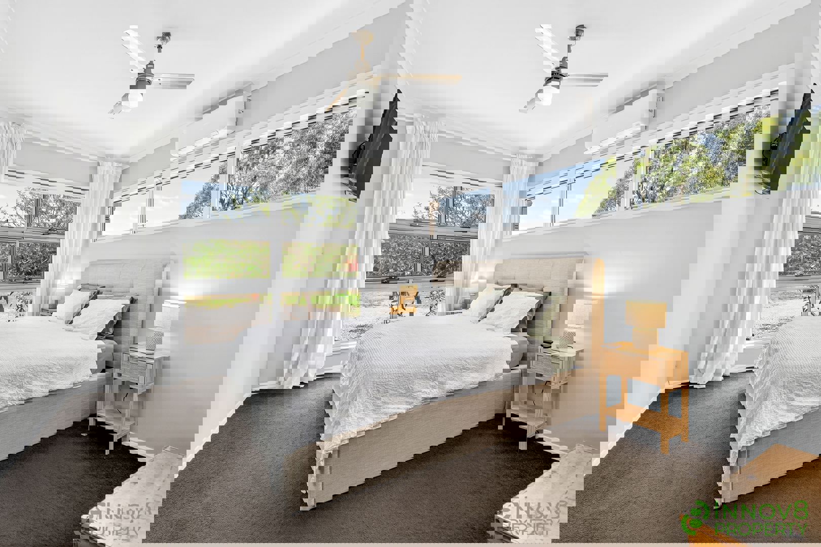 • Four well-positioned bedrooms that each capture a panoramic view of the surrounding natural bushland including the master bedroom with air-con, a generous walk-in robe, block-out blinds, a ceiling fan and a gorgeous ensuite