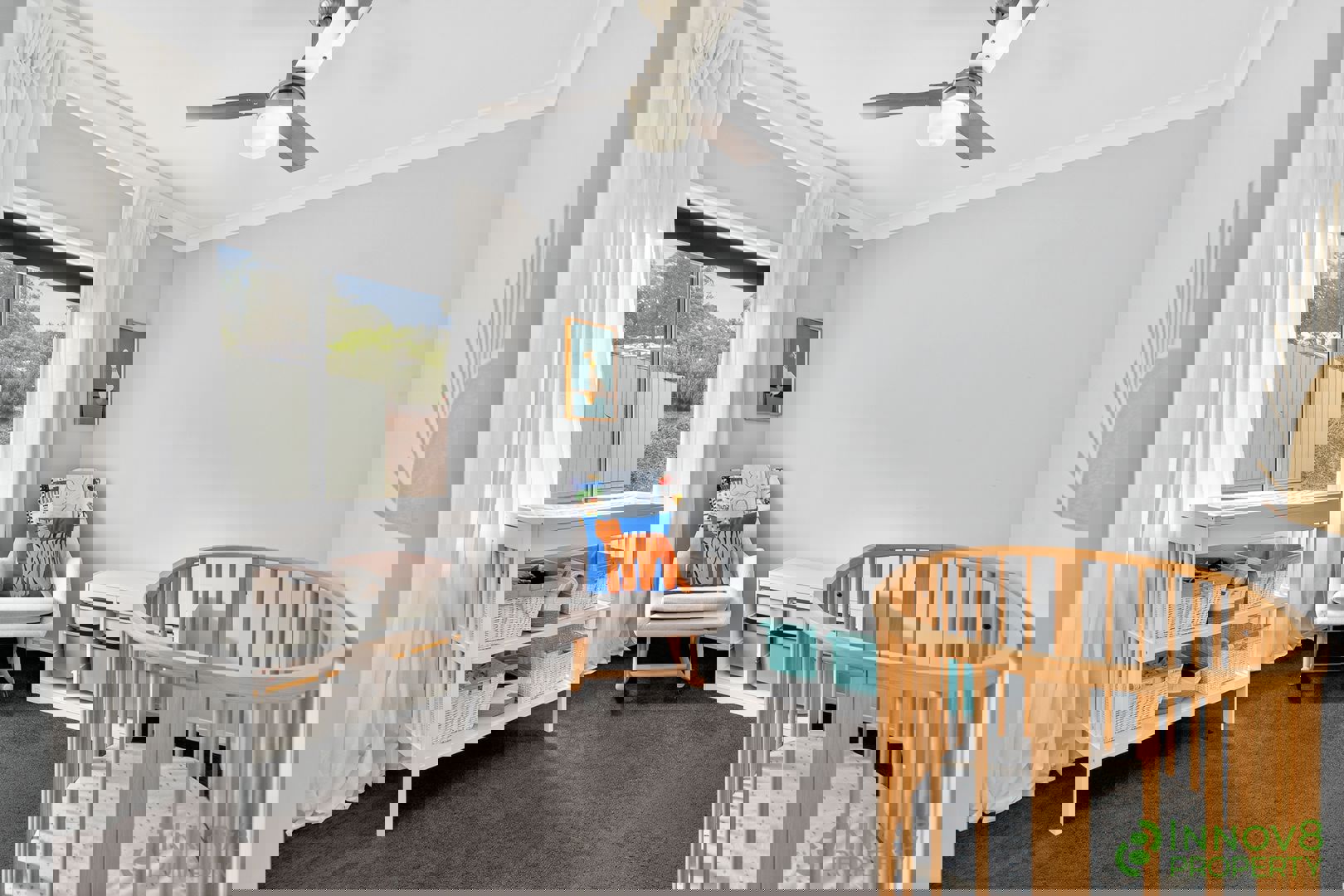 • Bedroom 3 provides a built-in robe, a split system air-conditioner and a ceiling fan