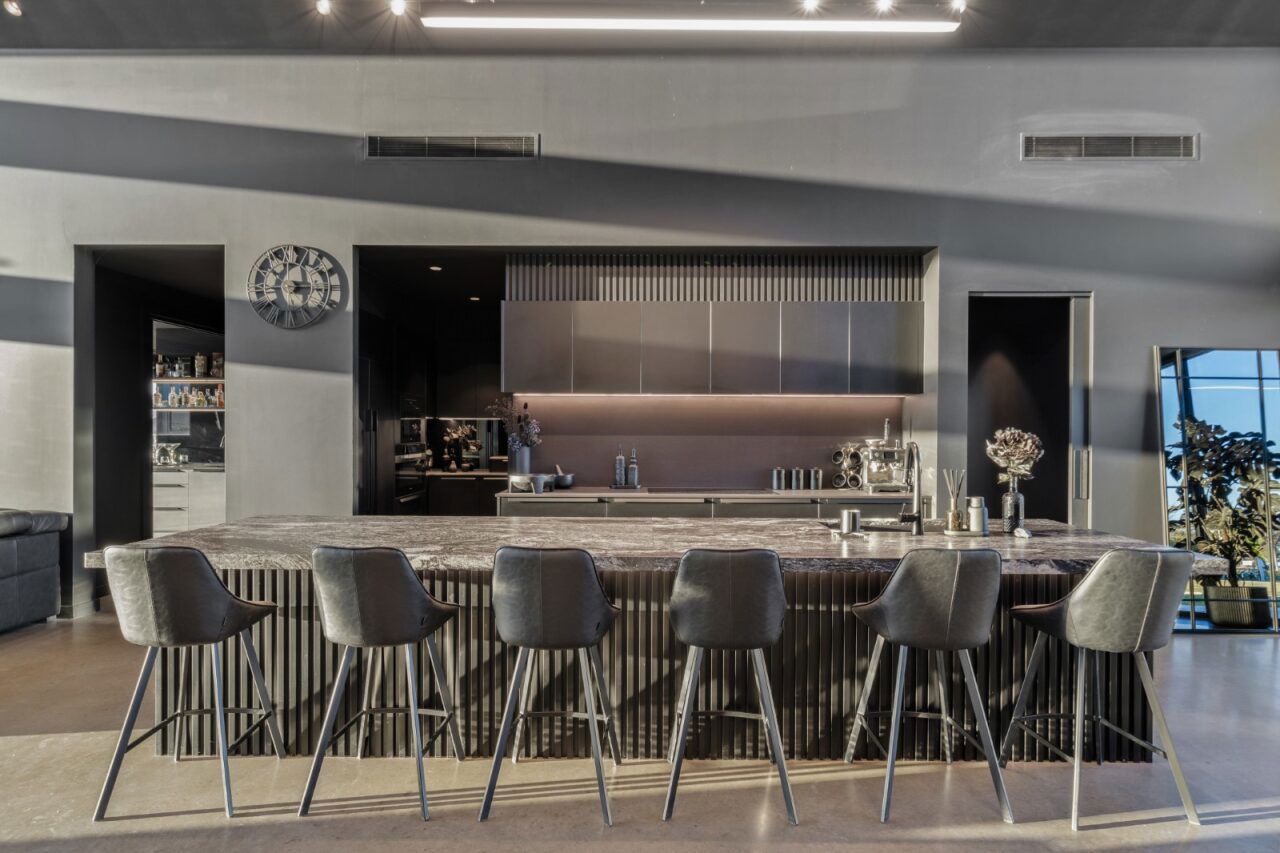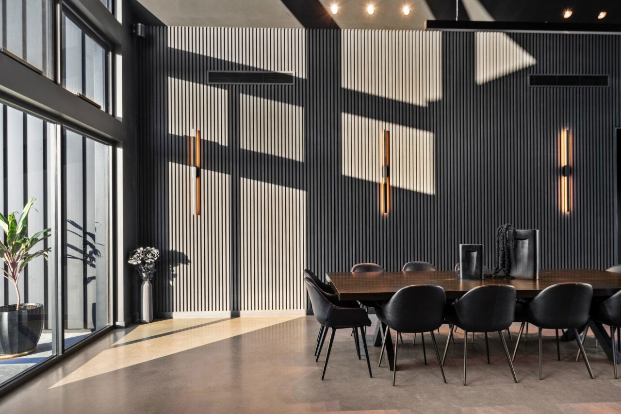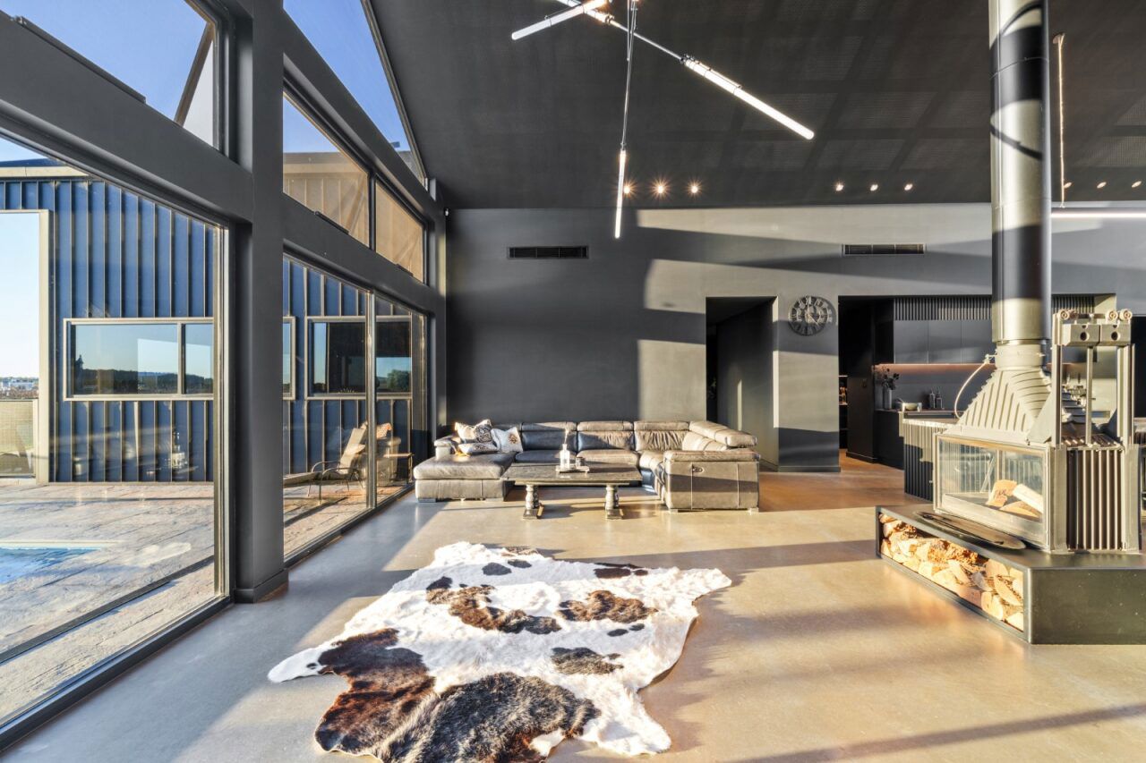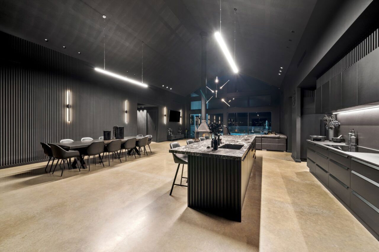 As you step through the custom Zen pivot door, you're welcomed into a space that opens with command, 8-metre cathedral ceilings, clean lines, and floor-to-ceiling glass that draws in natural light throughout the day.