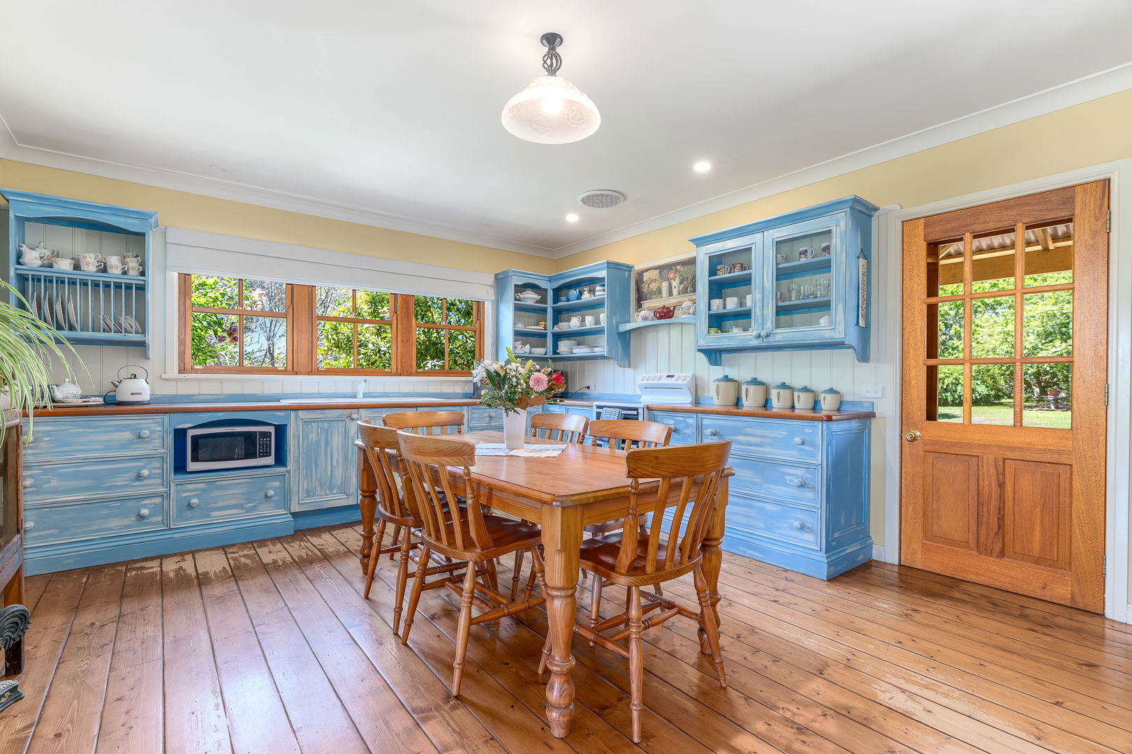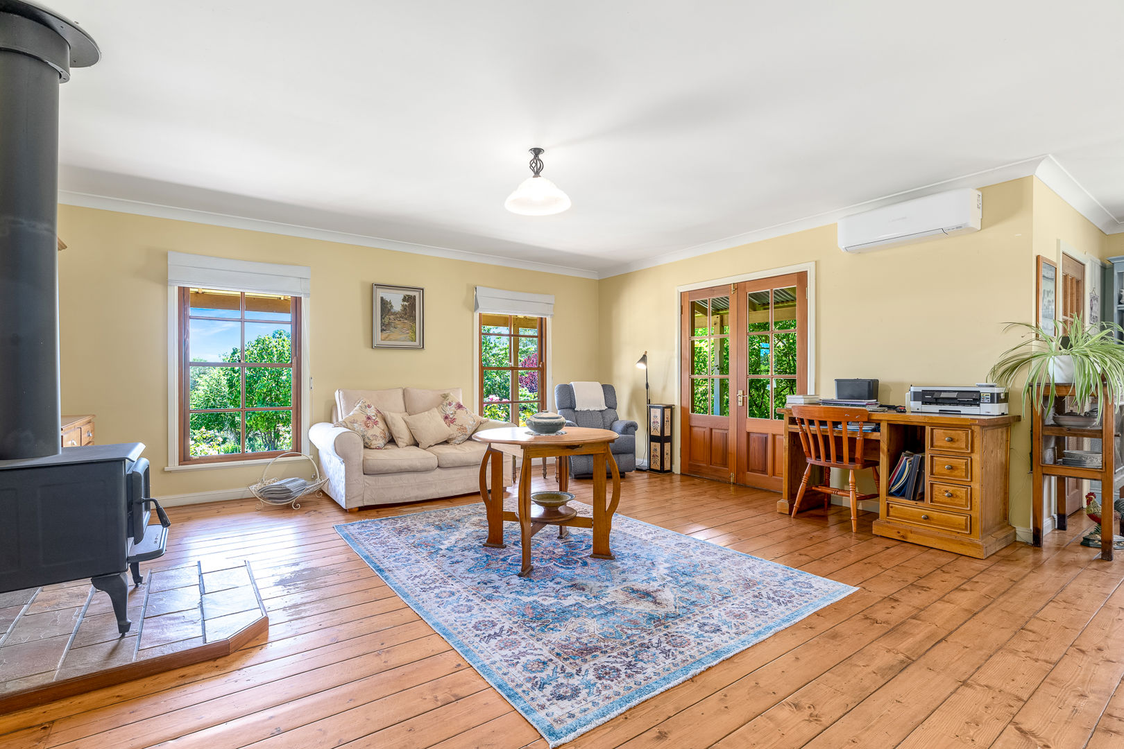 • Beautiful pine flooring, stained timber windows & French doors
