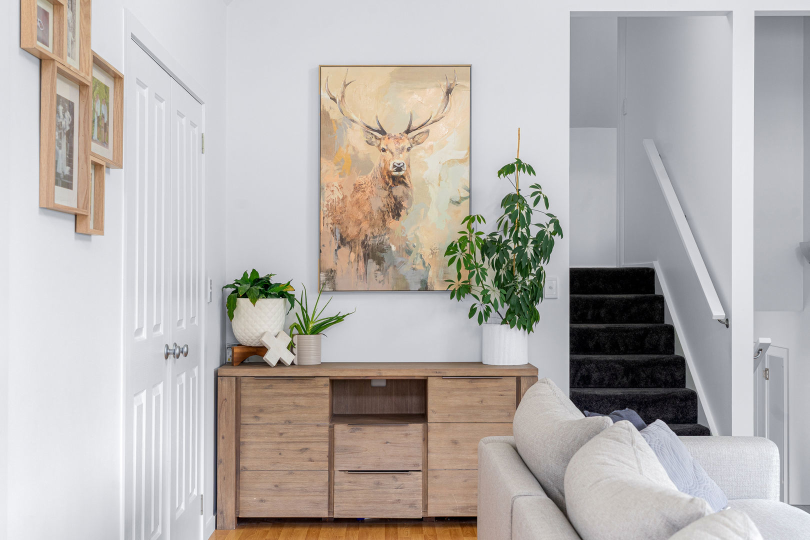 Inside, the ground floor welcomes you with a sun filled open plan living area that flows through the lounge, dining and modern kitchen. Stainless steel appliances, a large pantry and stone look benchtops create a practical and inviting space for home cooking. A fourth bedroom sits on this level and works perfectly as a home office, guest room or children's playroom.