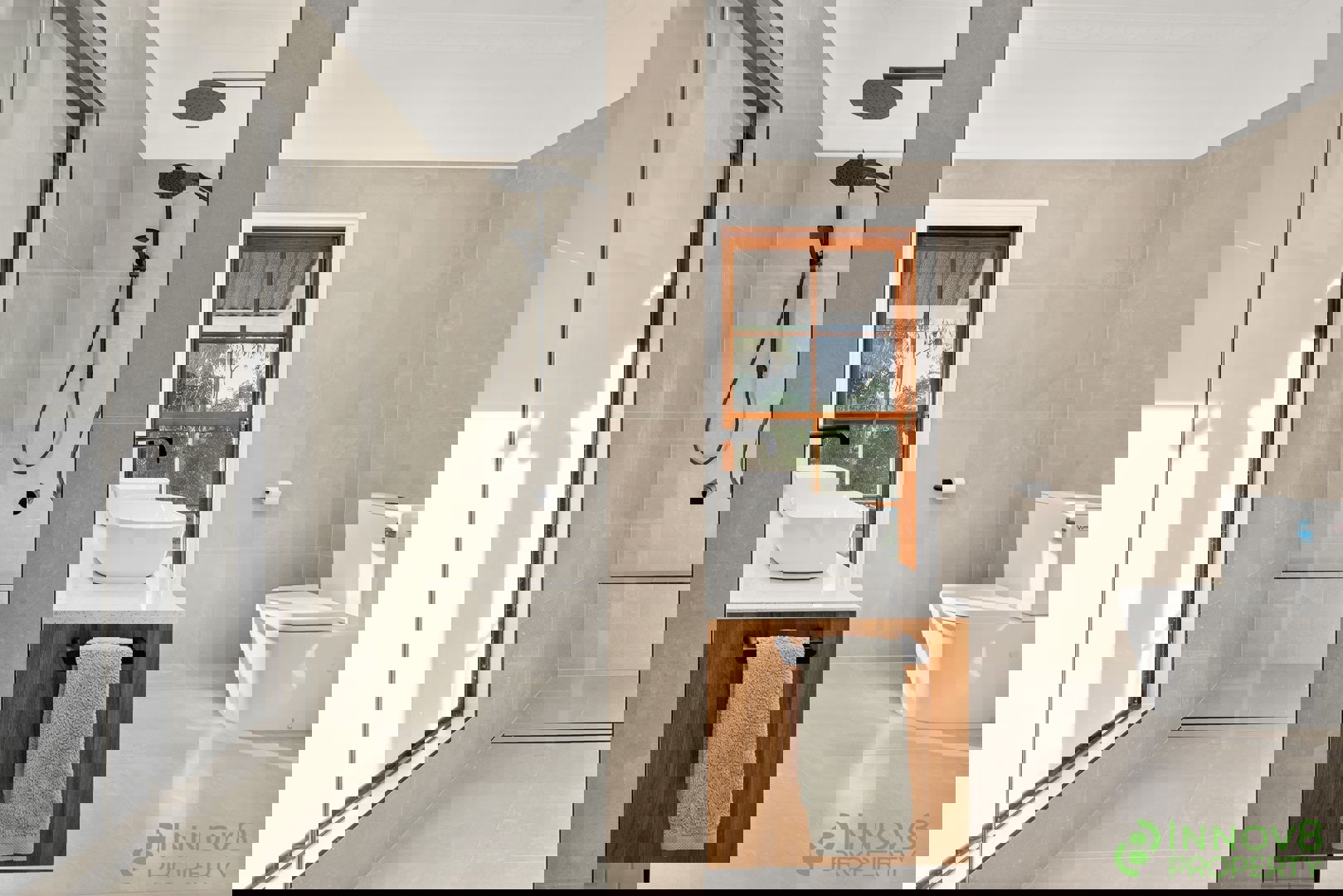 Right alongside these bedrooms, you’ll find the large third bathroom with a shower and vanity (both including new tap fittings) and also a separate toilet.