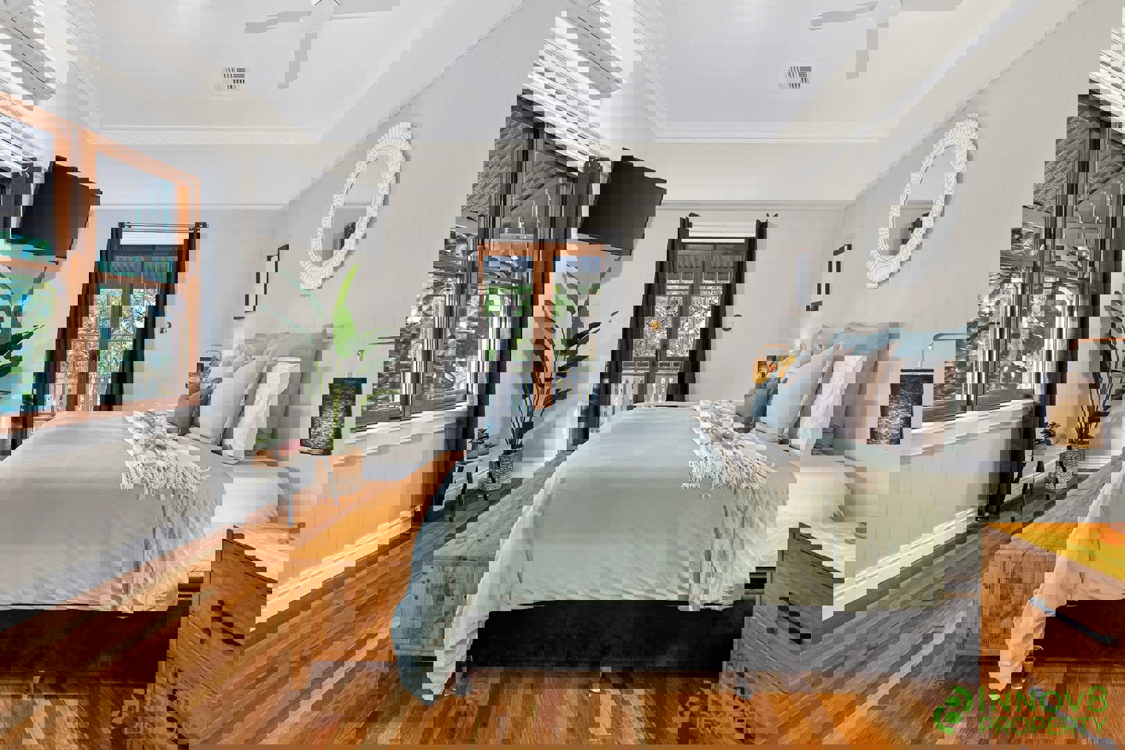 Head across to the other side of the monstrous lower level and you’ll discover yet another two oversized and air-conditioned bedrooms…each with plenty of natural light through the French windows and stunning bamboo flooring.