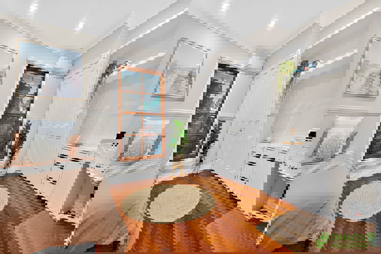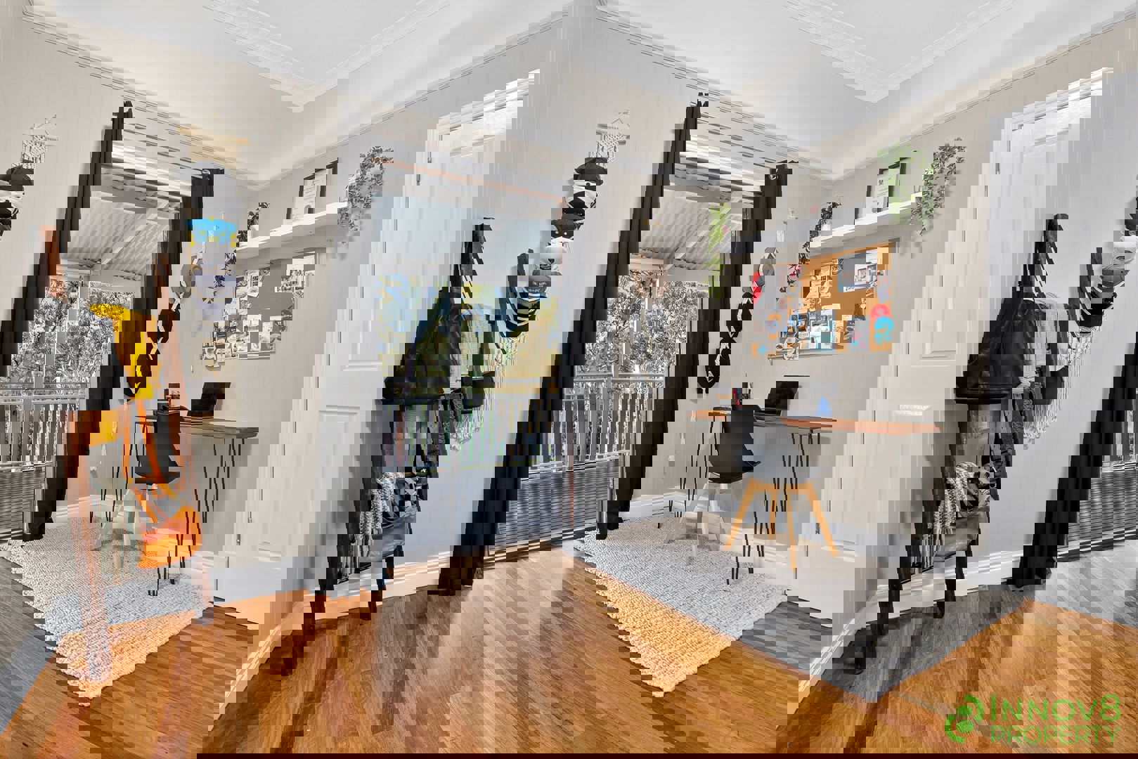 On the upper level, you’ll immediately notice the stunning hardwood timber floors and stylish ornate cornices that grace most of the upper area.