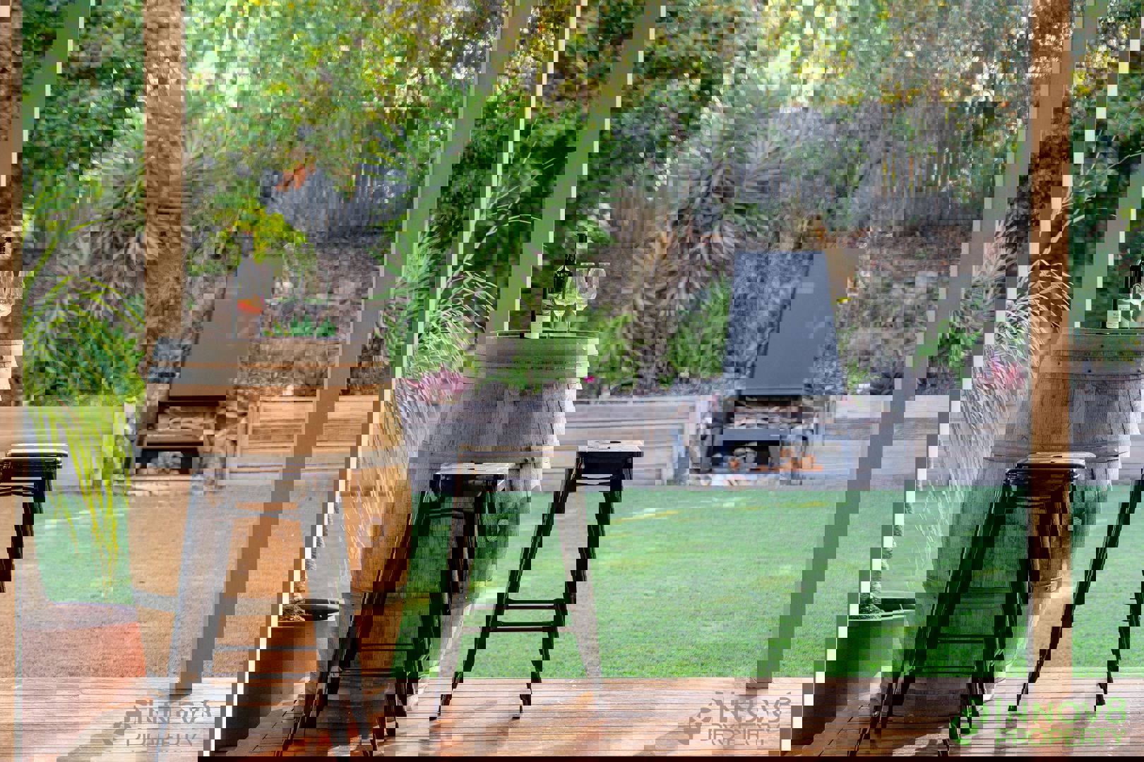 Wander back out to the main living area and you’ll open the huge set of timber bi-folding doors to discover the over-sized rear entertainment area with timber decking, an insulated roofline with an industrial sized fan and finally, an outdoor kitchen with built-in BBQ and sink – a true entertainer’s paradise if there ever was one!