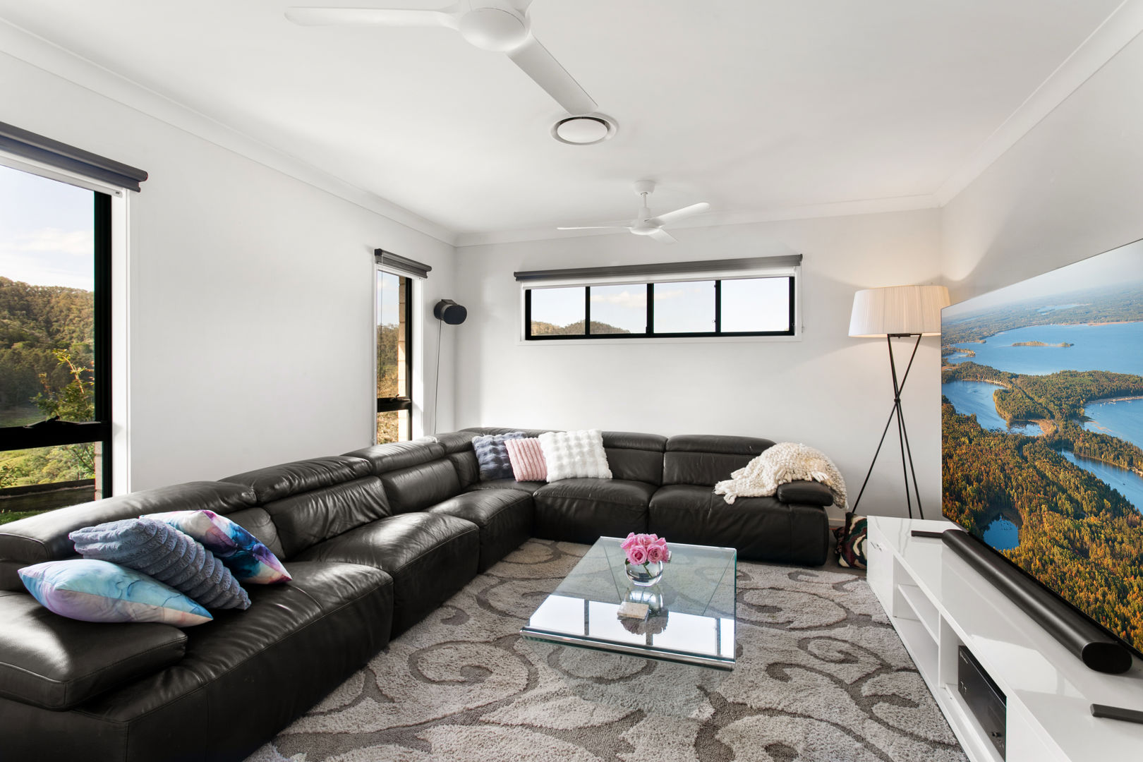 Features of the home include ducted air-conditioning, ceiling fans, large windows to showcase views and invite in light, stone benches, gas cooktop, Miele oven, integrated dishwasher, stylish window furnishings, roller blind on deck, sundrenched magnesium infinity pool, fire pit, solar power and generator.