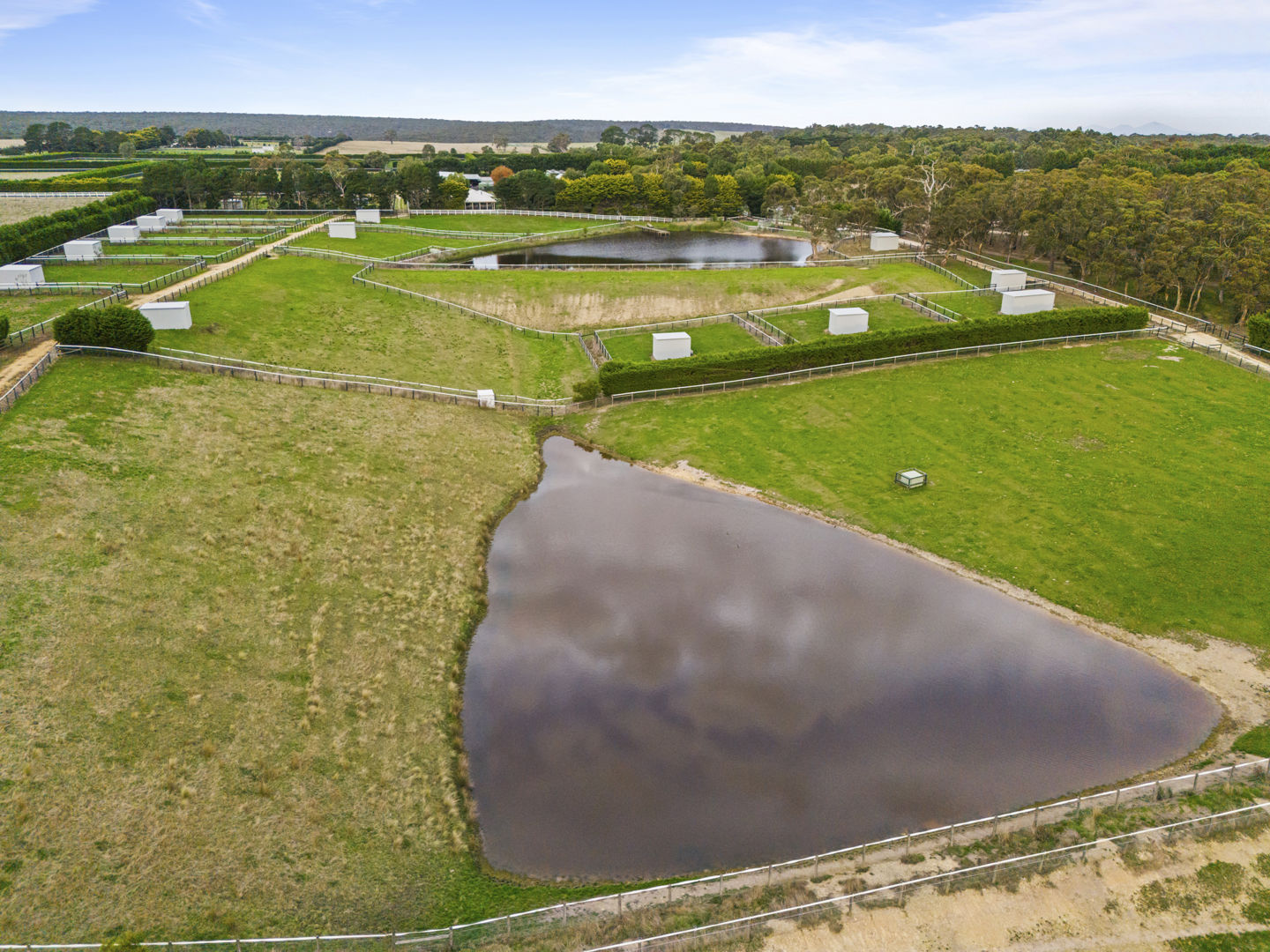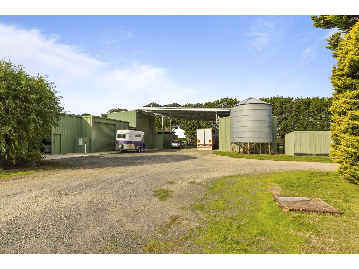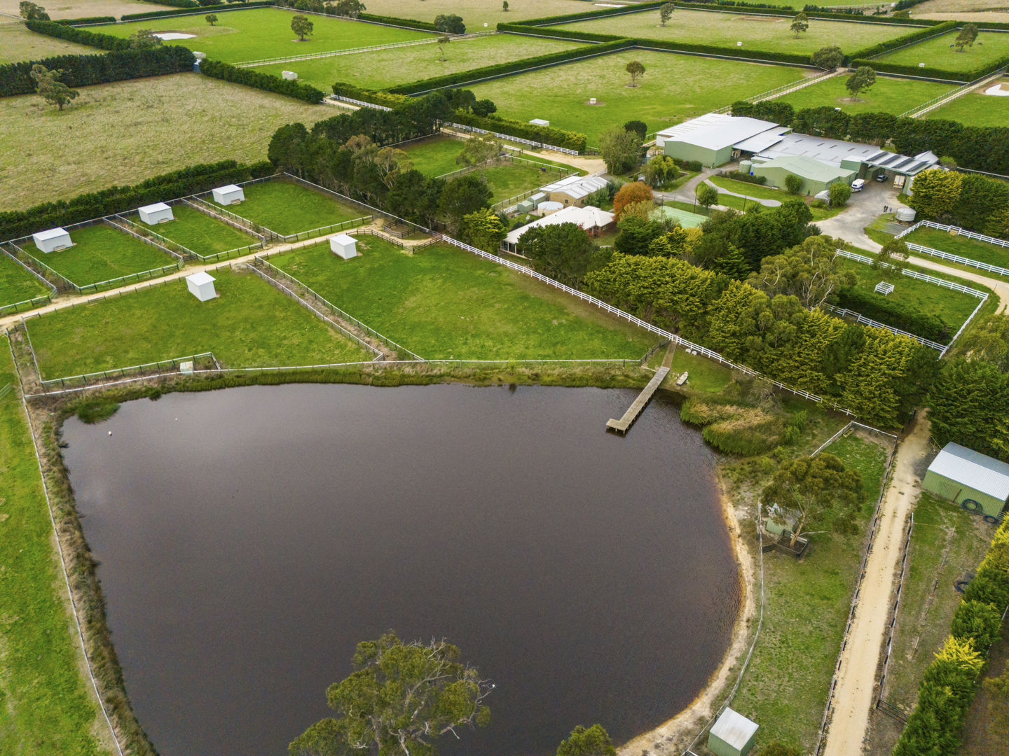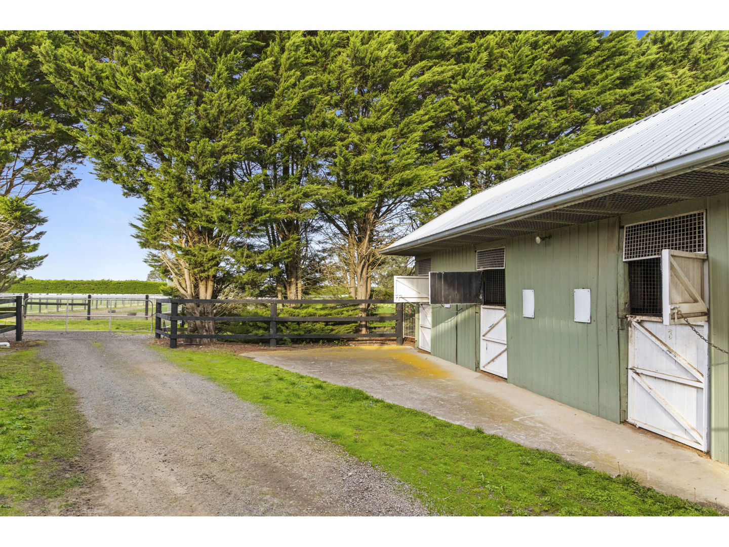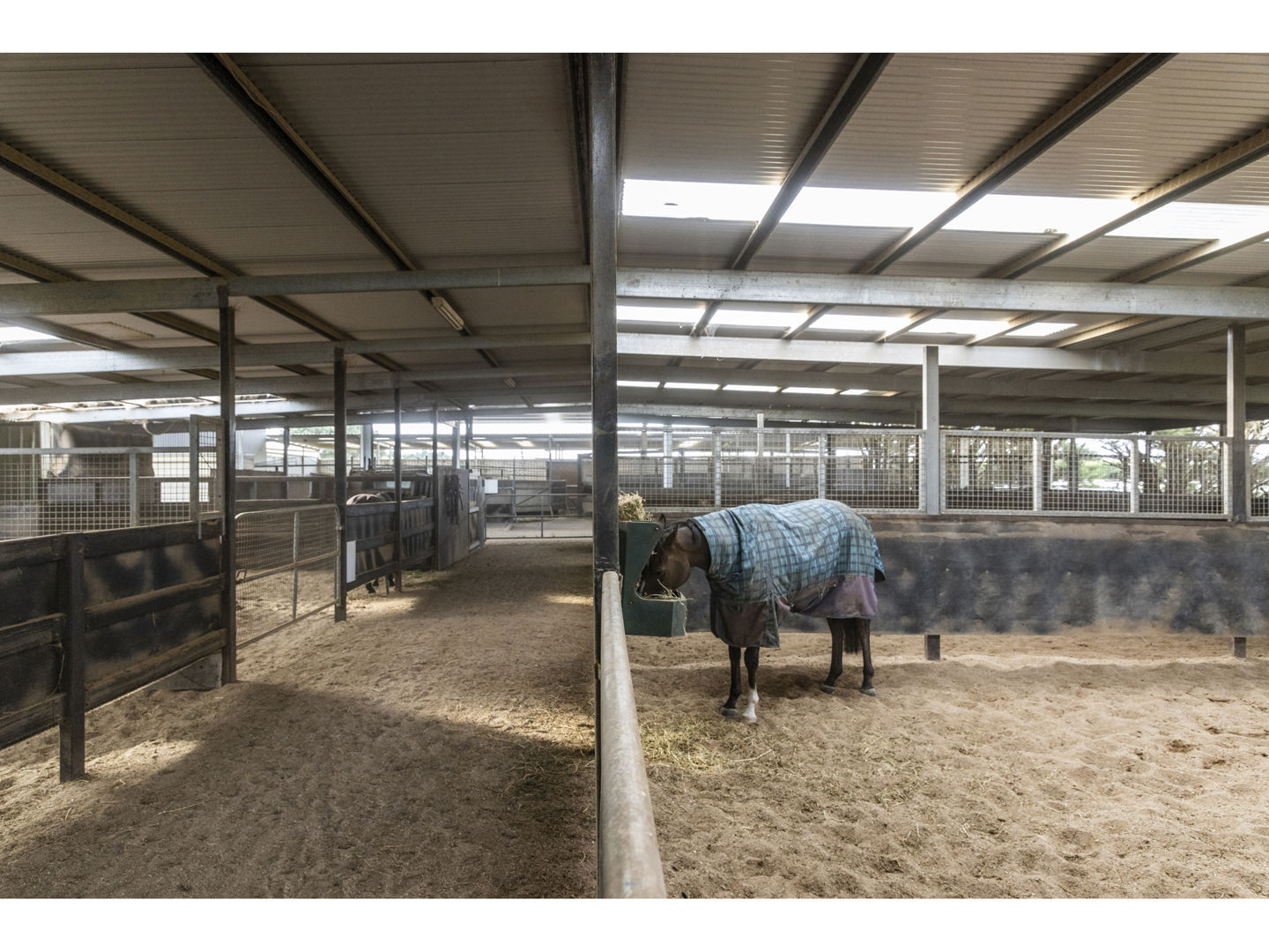 The stable block complex includes everything you’d expect of a high-end commercial enterprise including hot and cold wash bay, vet and rug room, undercover mare and foal crush, side and rear loading ramp, scales, enclosed scoping box, hourglass parade walk, and tearoom for staff members