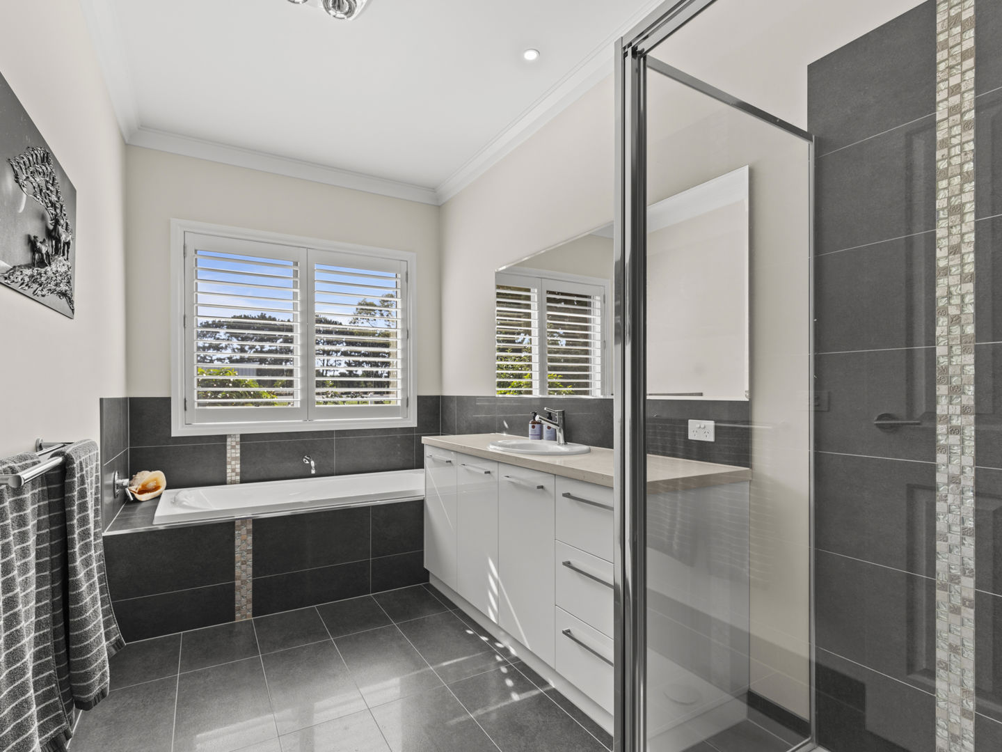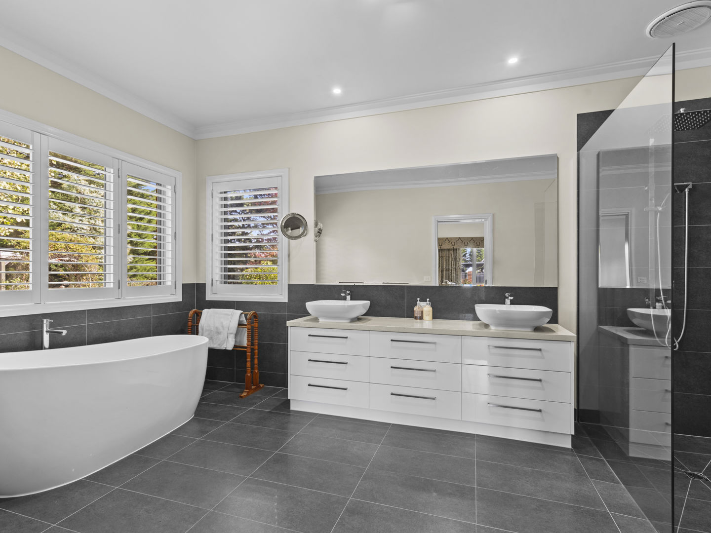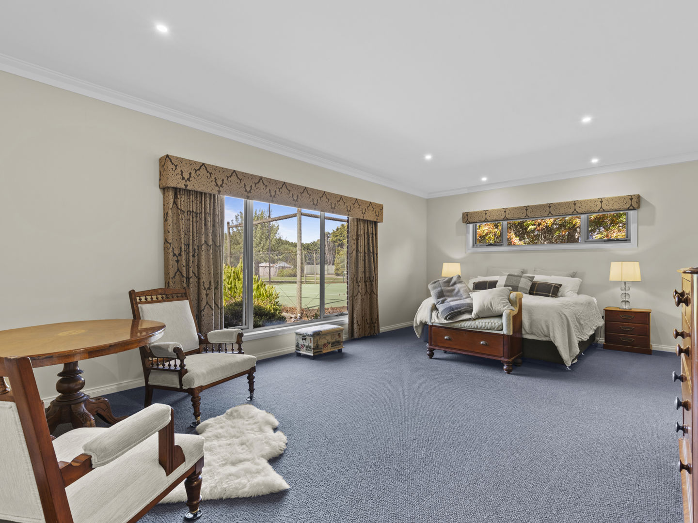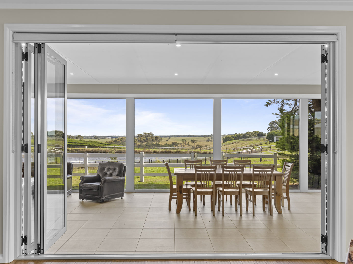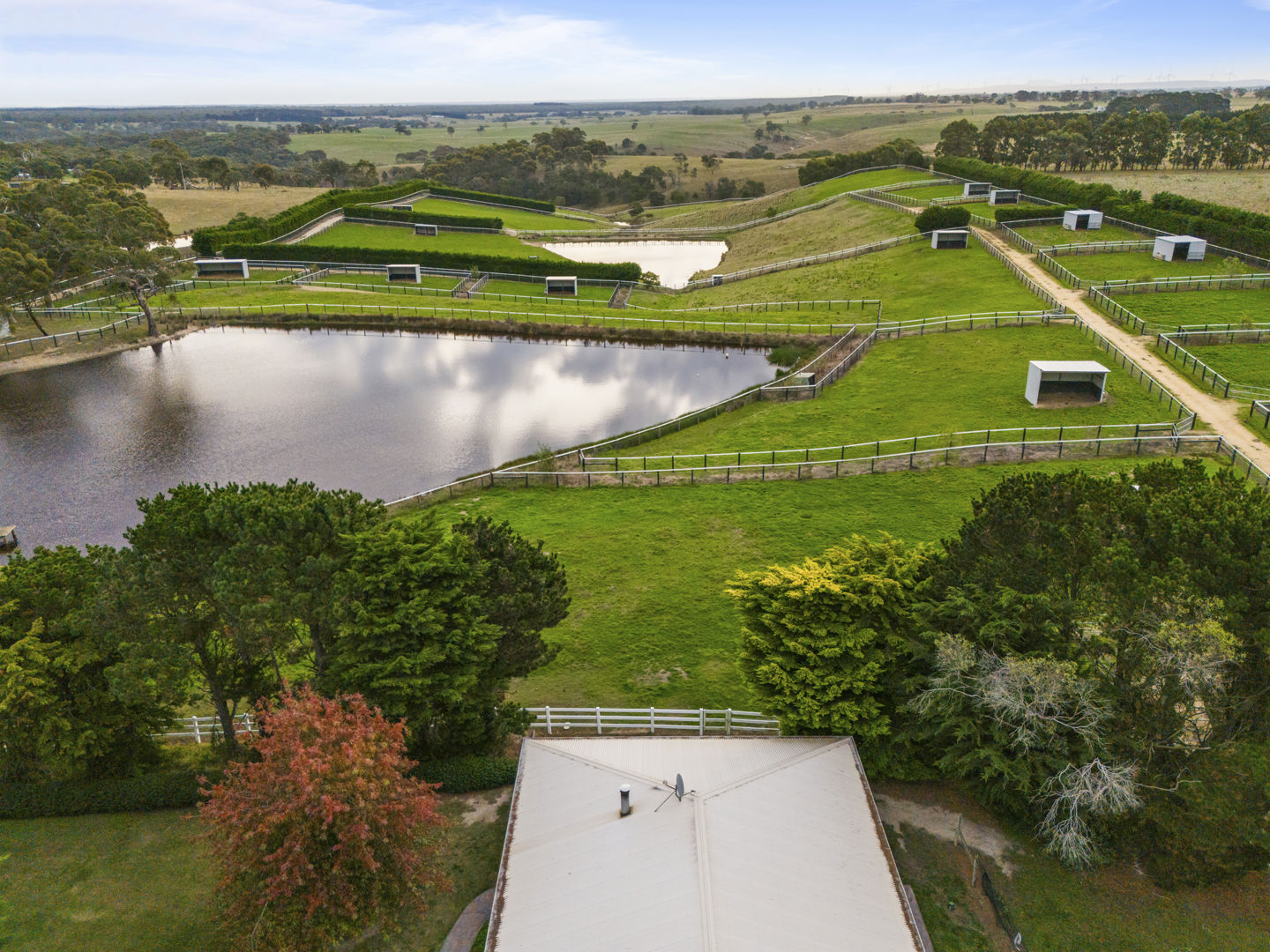 The stable block complex includes everything you’d expect of a high-end commercial enterprise including hot and cold wash bay, vet and rug room, undercover mare and foal crush, side and rear loading ramp, scales, enclosed scoping box, hourglass parade walk, and tearoom for staff members