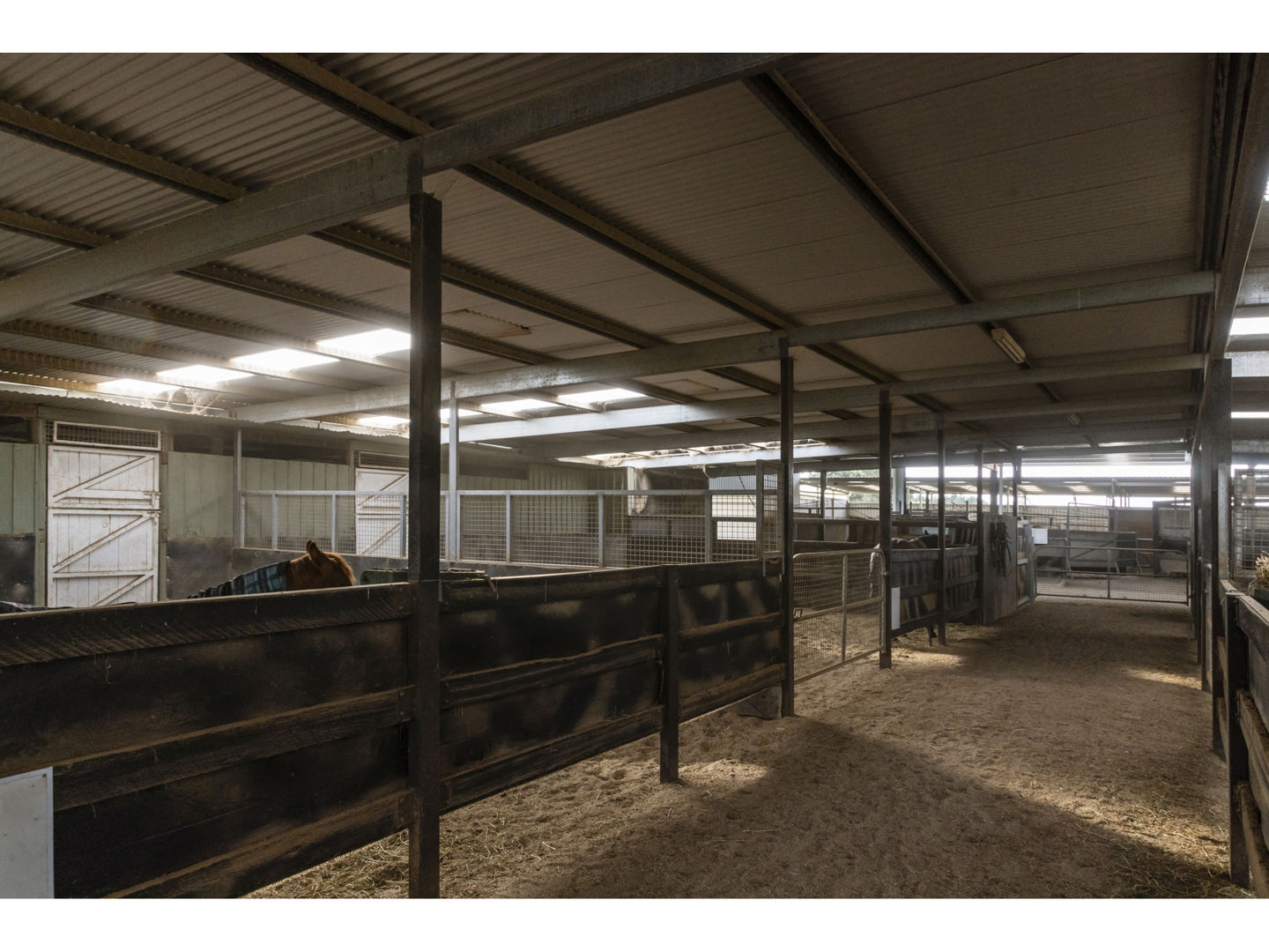 3 stable blocks, located at the entrance of the property, include 14 individual stables, 7 large undercover sand yards, a horse walker and 11* metre diameter round yard.