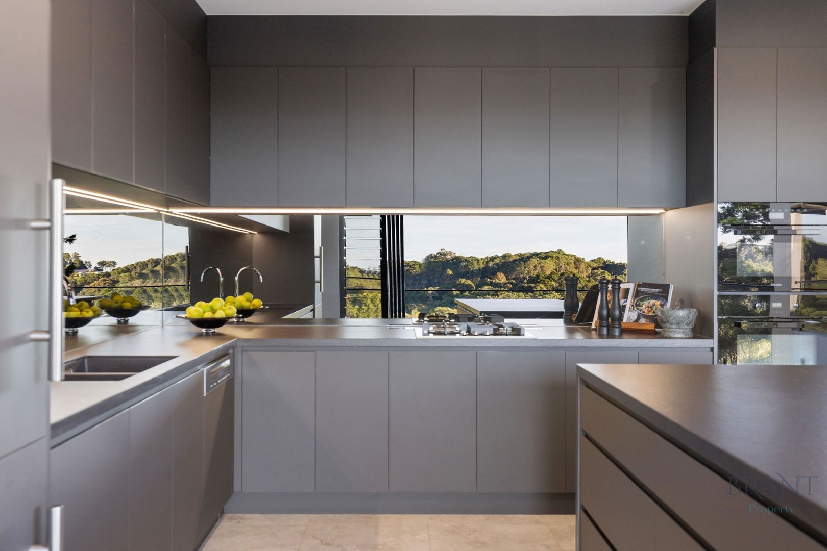 - Gourmet designer kitchen with premium appliances, expansive island, generous storage & prep zones