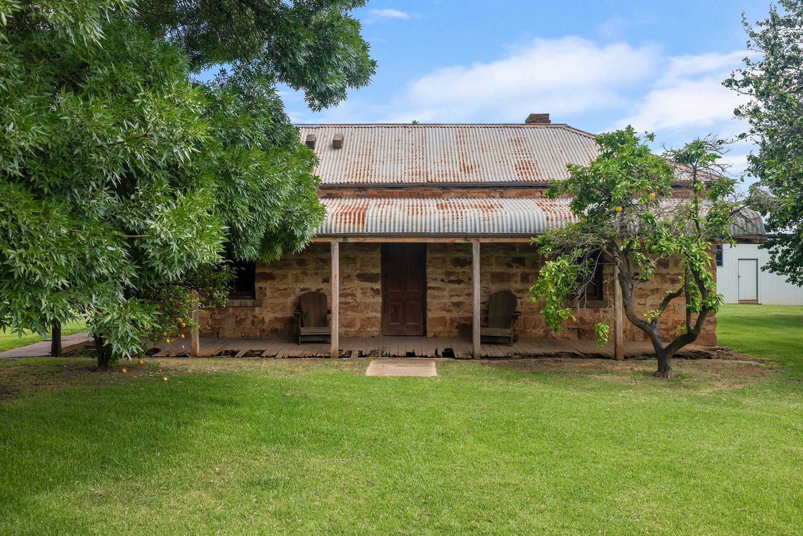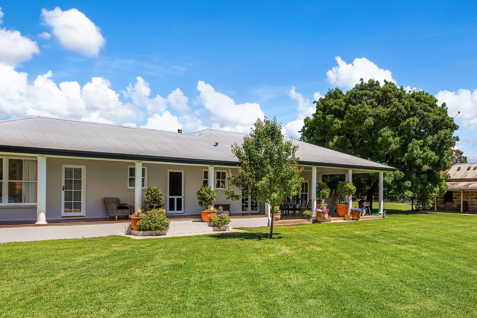 A beautifully renovated four-bedroom home sits in the heart of the property, surrounded by established gardens and mature trees.